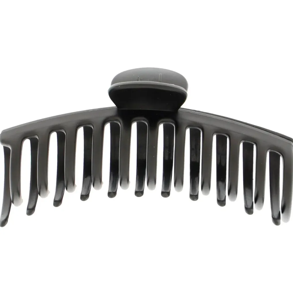 De Zenner Ronde Haarklem heeft een zwarte kleur met een matte finish. Dankzij het extra grote formaat van 14cm is de klem ideaal voor lang en/of dik haar. Steek je haar mooi op door je halve of hele haar met de klem vast te zetten.
