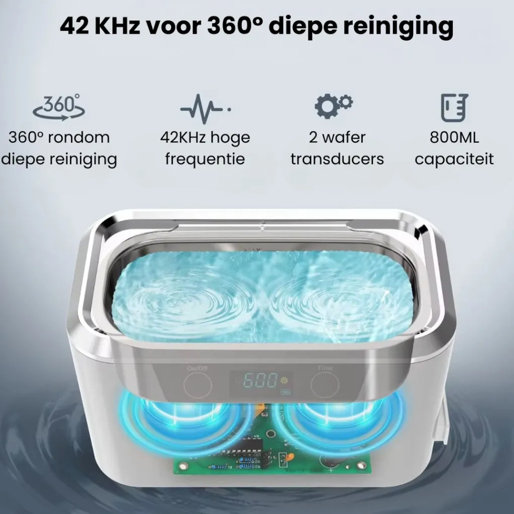 Ultrasoon vermogen van 60W voor een grondige reiniging.