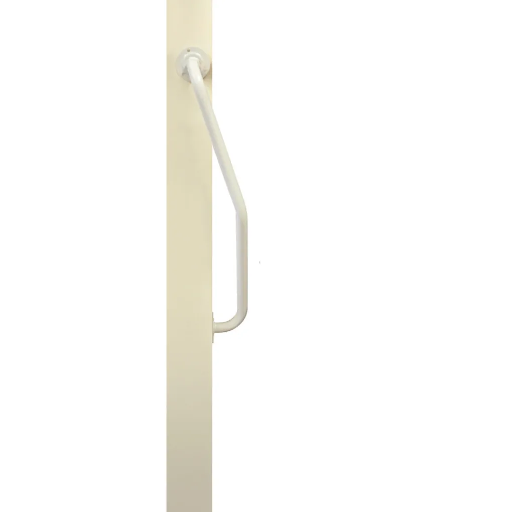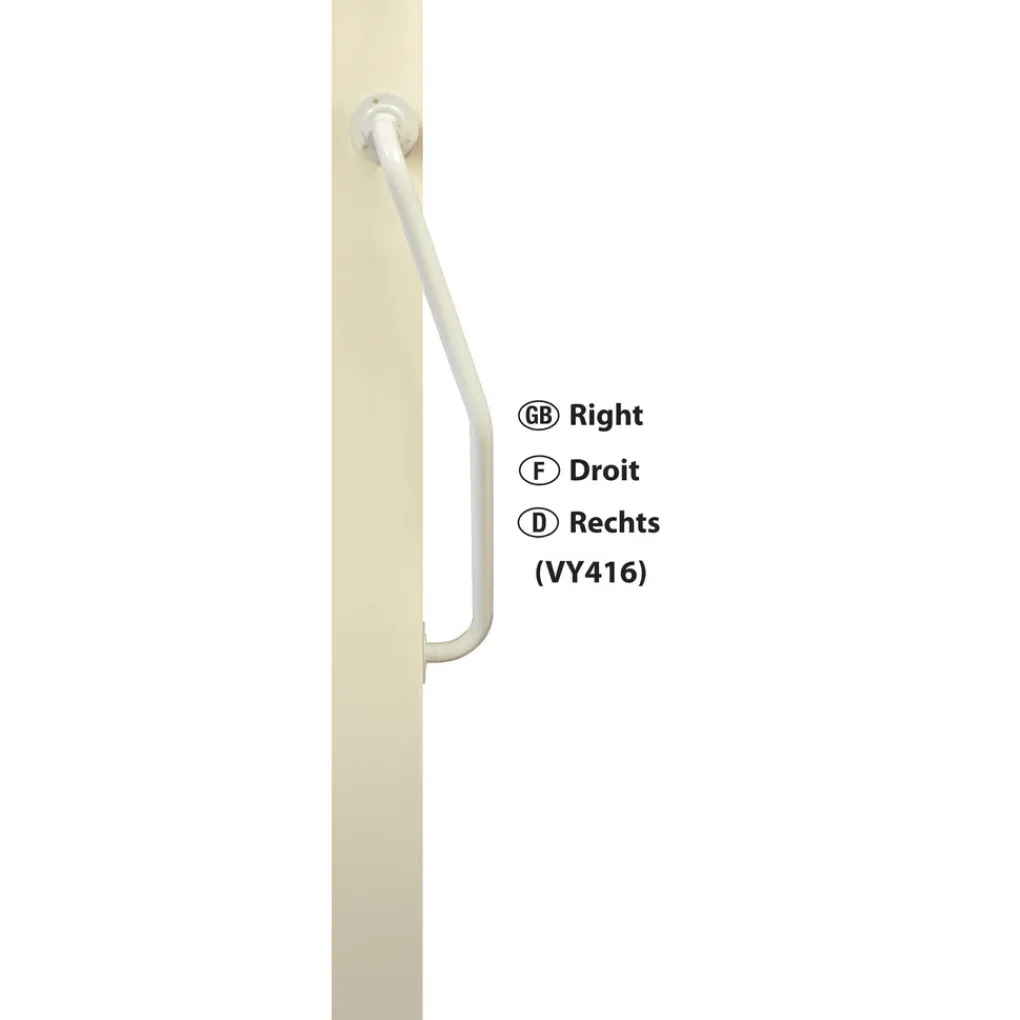 De gedraaide wandbeugel rechts is een gebogen handgreep die ideaal is voor de montage in portieken en trappenhuizen.