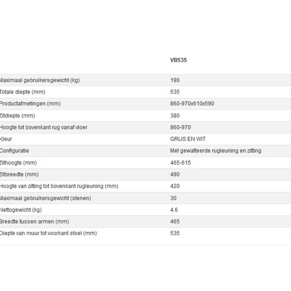 - Hoogte van de zitting tot vloer (mm): 465-615