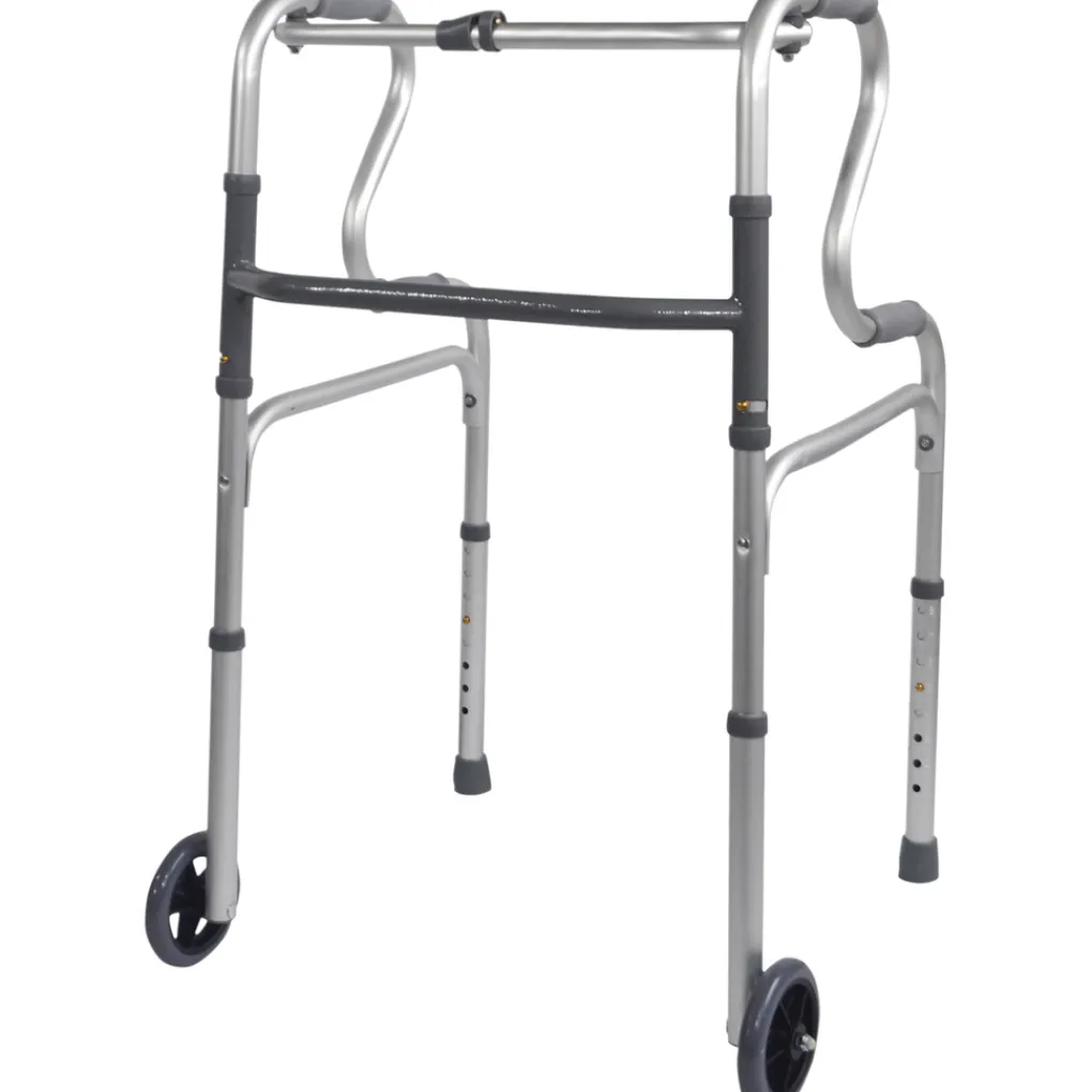 De lichtgewicht aluminium looprek met sta op functie met een brede basis voor maximale stabiliteit. Ideaal voor het helpen van personen om veilig vanuit een zittende positie op te staan. Het aluminium looprek is voorzien van zachte handgrepen, een knop vouwfunctie en in hoogte verstelbare poten. Het looprek kan worden opgevouwen wanneer het niet in gebruik is waardoor het een echte ruimtebesparend apparaat is.