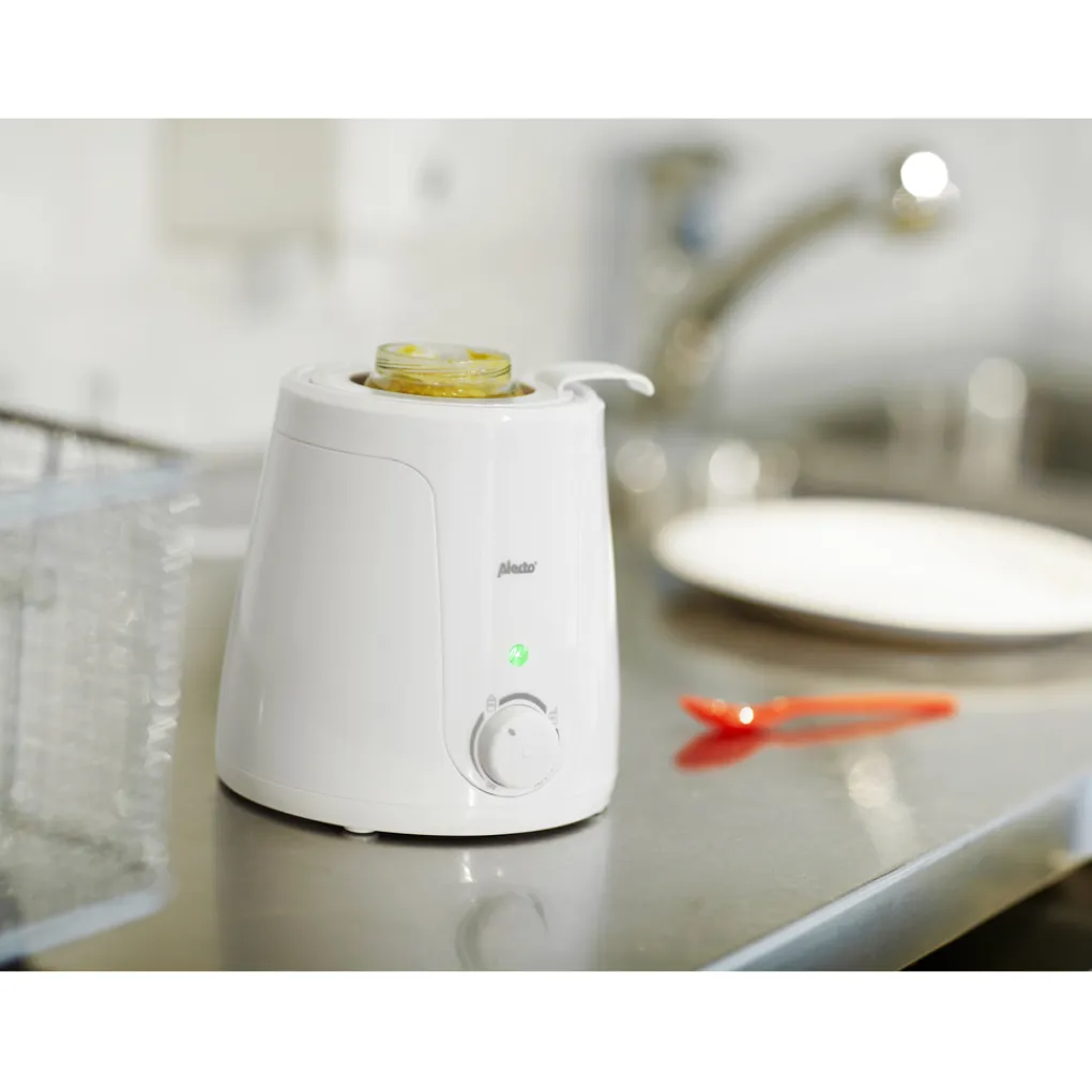 Hoe gebruik je de flessenwarmer?Deze flessenwarmer is heel gemakkelijk in gebruik en dat is niet voor niks. Als je kleintje honger heeft wil jij graag snel een lekkere fles of bordje op tafel zetten, op exact de juiste temperatuur. Letterlijk in een handomdraai, dus zonder ingewikkelde gebruiksaanwijzing. Het gaat als volgt: je doet water in de flessenwarmer en je zet de fles of het potje erin. Vervolgens stel je de gewenste temperatuur in en wacht je een paar minuutjes. Dan gaat het LED lampje branden ter indicatie dat het eten of drinken gelijkmatig is verwarmd:het is tijd om het buikje rond te eten of drinken!Met Alecto kies je voor een doordacht en gebruiksvriendelijk product van hoge kwaliteit. Op alle producten van Alecto ontvang je desondanks 24 maanden garantie!Compatibel met de babyflessen van onder andere de volgende merken: