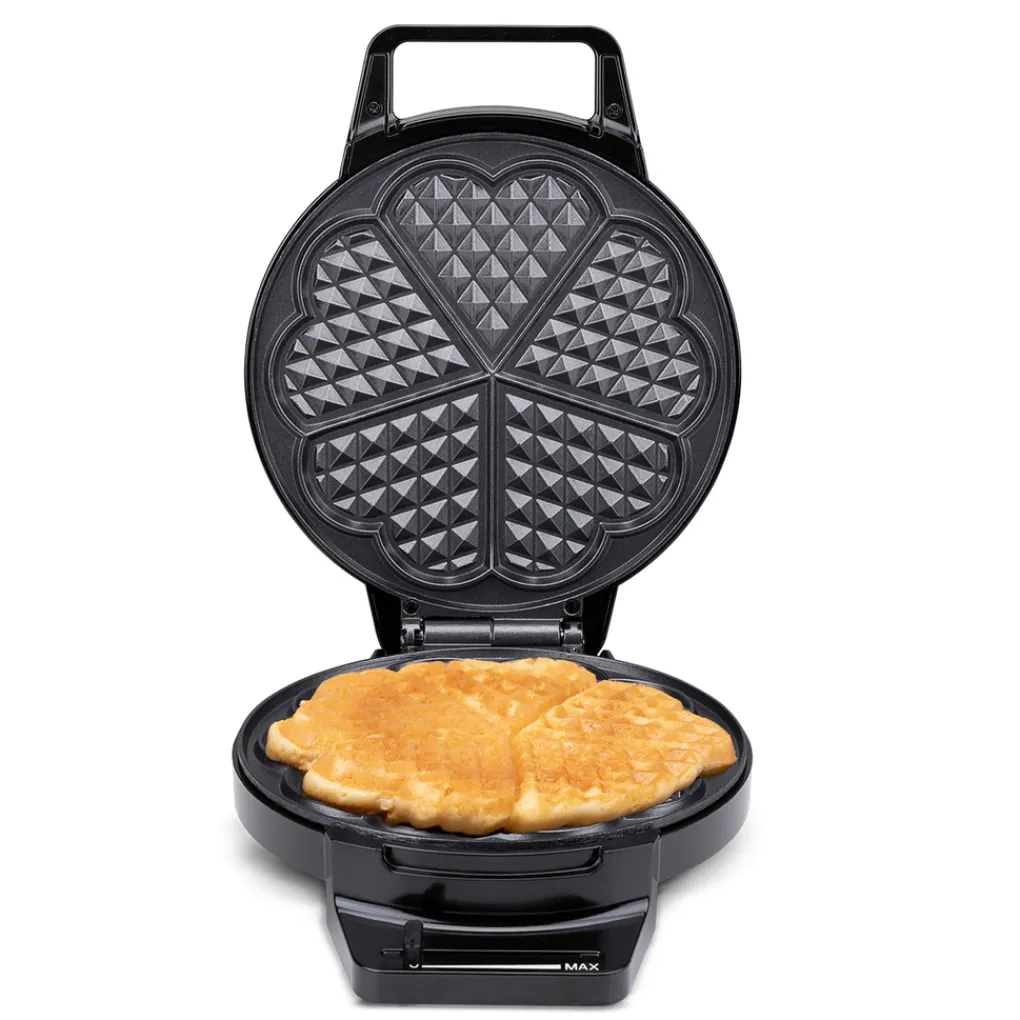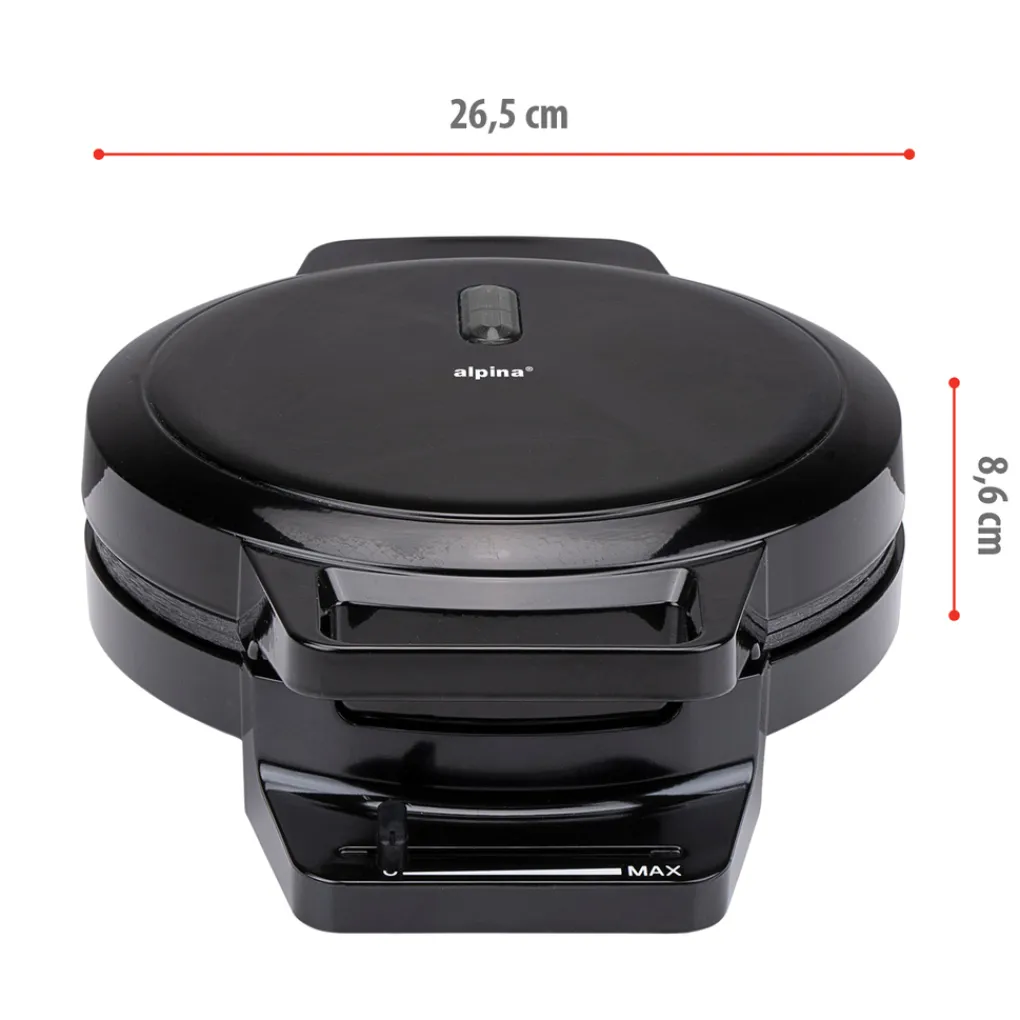 Nadat je het wafelijzer voor de eerste keer hebt schoongemaakt, steek je de stekker in het stopcontact en zet je het apparaat aan door knop tot MAX-stand open te draaien. De wafelmaker zal voorverwarmen en geeft aan doormiddel van een groen lichtje wanneer het klaar is voor gebruik. Schenk het beslag in het wafelijzer en sluit de deksel voorzichtig om morsen te voorkomen. In 3-5 minuten zijn de wafels klaar, waarna het indicatielampje zal gaan branden. Eet smakelijk!