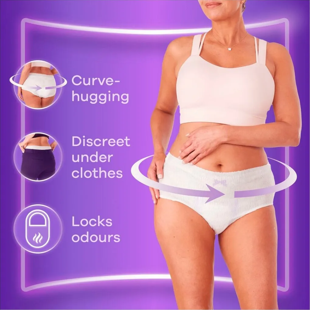 Het 360° FormFit-design en hun kern bieden een optimale en comfortabele pasvorm, zodat je voluit van het leven geniet met een bescherming die je ongelooflijk goed past. De incontinentiebroekjes zijn ook geschikt voor incontinentie na de bevalling.
