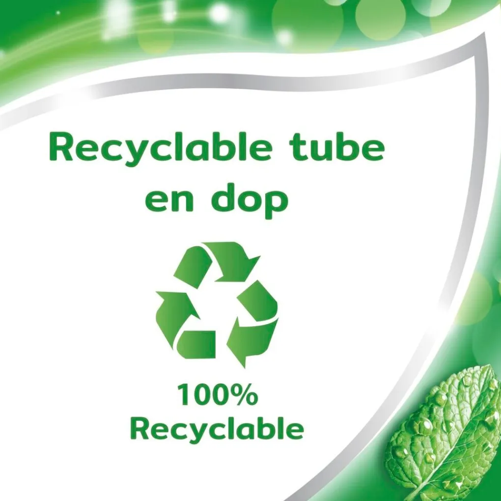 Aquafresh Anti-cariës Tandpasta wordt geleverd in een recyclebare plastic tube en dop, vergeet niet deze na gebruik te recyclen.