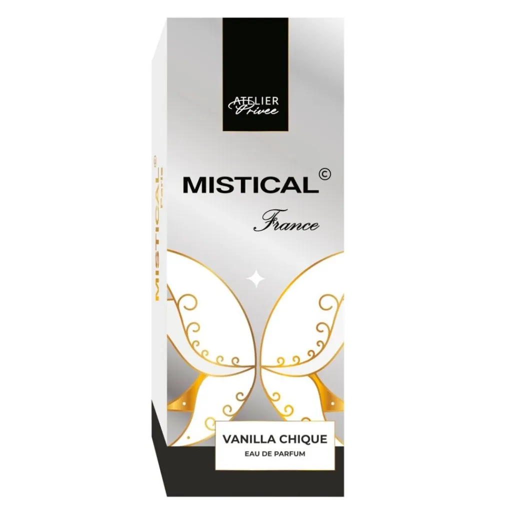 Het Atelier Privee Mistical Vanilla Chique Eau de Parfum opent met een zachte, romige vanille die direct een warme en omhullende sfeer creëert.