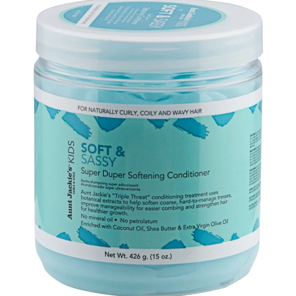 De drievoudige Aunt Jackie’s Kids Soft & Sassy Conditioner is gemaakt met met botanische extracten. De conditioner gebruik je om dik haar te verzachten, te verbeteren en beter doorkambaar te krijgen met een gezondere groei.