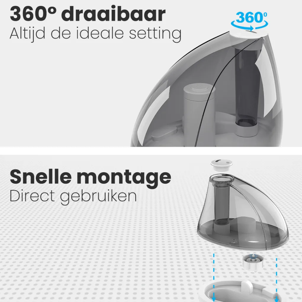 100% veilig en onschadelijk De luchtbevochtiger is geschikt voor het hele gezin. Hij is namelijk volledig BPA-vrij en niet giftig. Plaats hem dus zorgeloos in de babykamer, de humidifier is volledig onschadelijk! Om de pure luchtkwaliteit optimaal te houden wordt het aangeraden gedistilleerd water te gebruiken en de filter elke 6 maanden te vervangen.