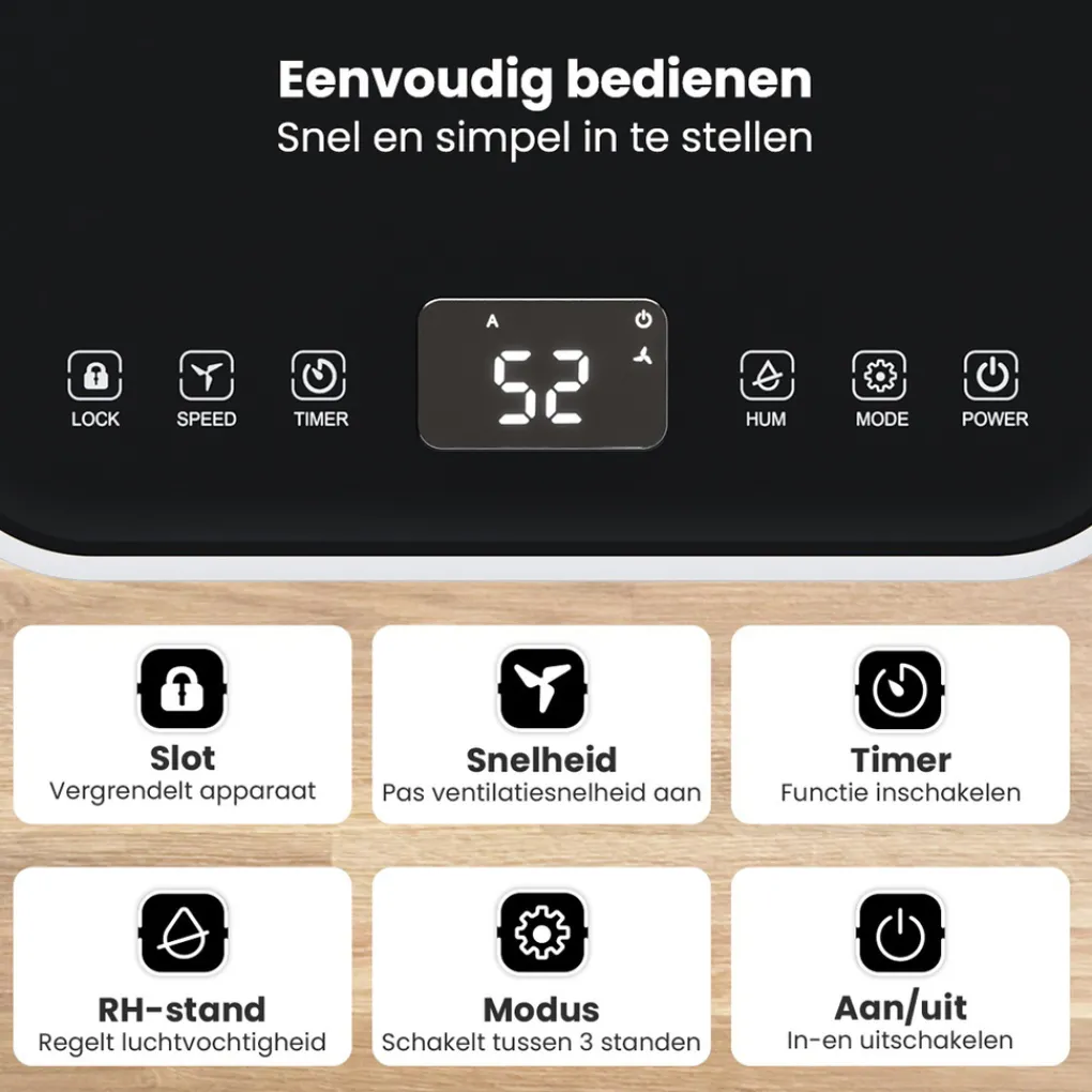 - Ontvochtigingscapaciteit van 10 liter per dag