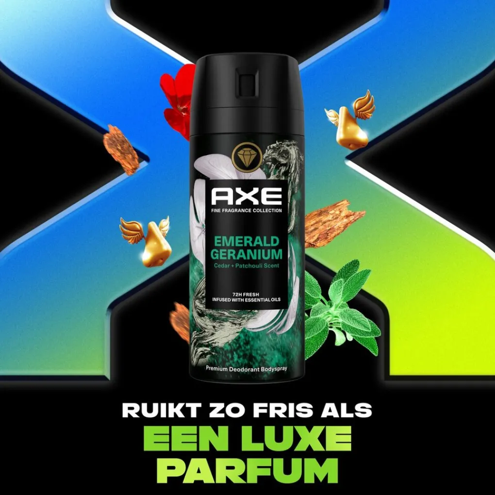 Wil jij langer fris ruiken? Vieze geurtjes zijn verleden tijd met Axe Fine Fragrance Emerald Geranium Deodorant & Bodyspray.