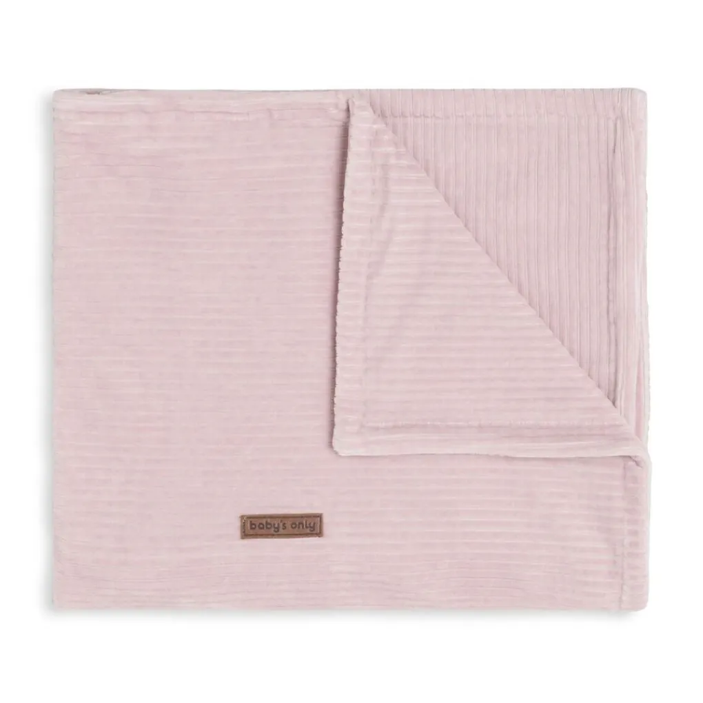 Dit dekentje met een hippe corduroy look heeft een mooie zachte oud roze kleur.