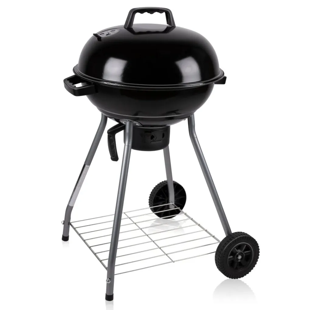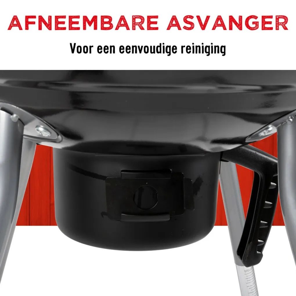 Asvanger en wielen Onder de vuurschaal zit een asvanger die, zoals de naam al zegt, de as opvangt. Erg handig, want dit bespaart je nogal wat schoonmaakwerkzaamheden. Verplaatsen van de barbecue gaat gemakkelijk dankzij de twee wieltjes en de twee handvatten op de vuurschaal.