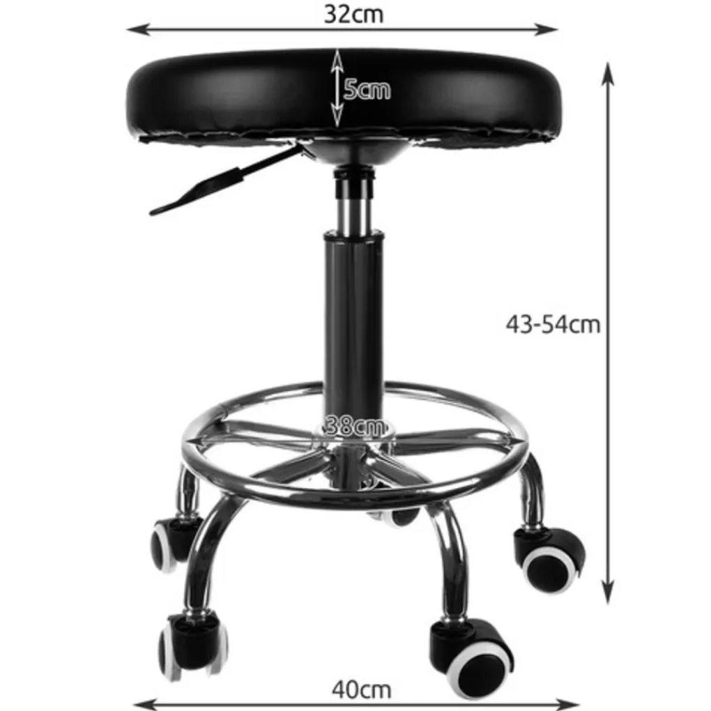De zithoogte is verstelbaar van 43-54 cm en de diameter van de zitting is 32 cm.
