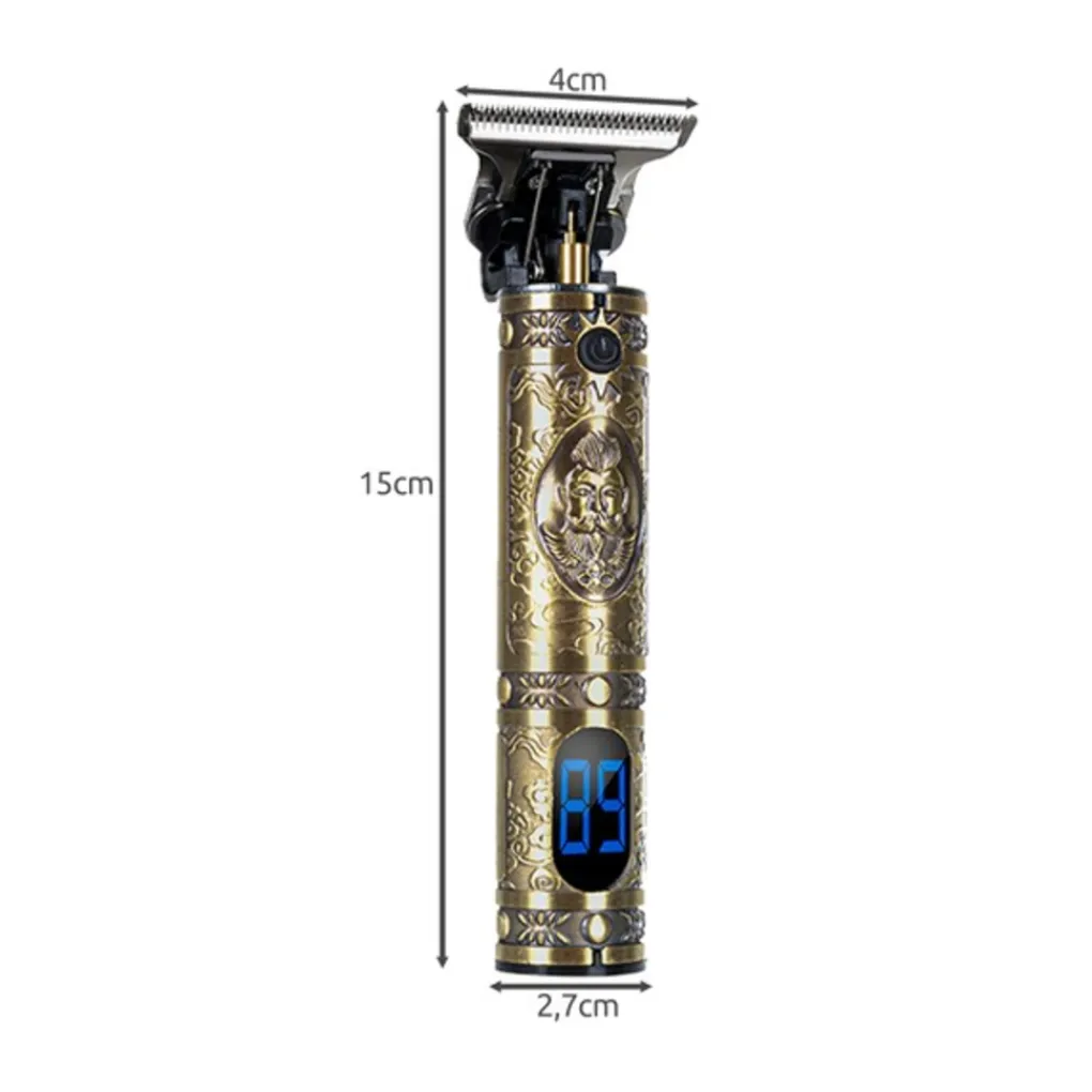 De Soulima Haar En Baardtrimmer heeft een display waarop het batterijniveau wordt weergegeven in de kleur blauw. De trimmer wordt gebruikt voor het knippen en scheren van zowel het haar als de baard. De trimmer is stevig en gedecoreerd met een uniek old school patroon. Perfect voor zowel de kapper, barber als voor thuisgebruik.