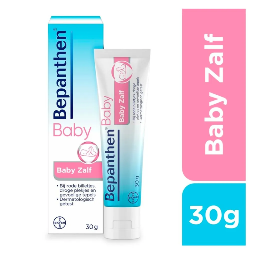 Bepanthen Baby Zalf bevat een hoge concentratie dexpanthenol en ondersteunt het natuurlijke huidherstel. Door de speciale samenstelling vormt de zalf een beschermend laagje op de huid. Het doorzichtige laagje sluit de huid niet af en laat haar ademen. De babyhuid wordt beschermd en haar natuurlijke kracht en evenwicht blijft behouden. De zalf is zorgvuldig samengesteld en bevat geen kleurstoffen, conserveermiddelen of parfum.