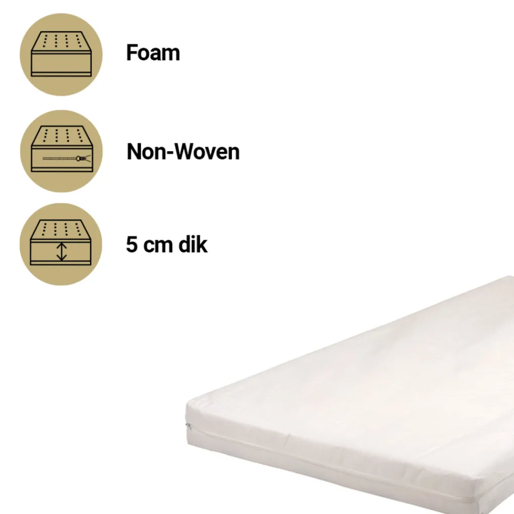 Het Comfort co-sleeper matras is een comfortabel matras gemaakt van Foam. De polyeterschuimvulling zorgt ervoor dat het matras stevig, veerkrachtig en vormvast is. Het is een luchtregulerend matras voorzien van een Non woven afritsbare en uitwasbare tijk. Het matras heeft een formaat van 50×88 en is 5 cm dik.