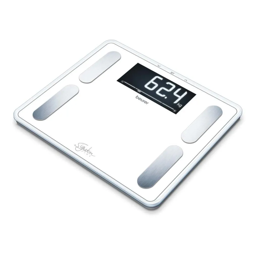De BF 410 SignatureLine White Personenweegschaal met uitgebreide lichaamsanalyse is een personenweegschaal voor het meten van lichaamsvet met analyse van het hele lichaam, interpretatie van de meetwaarden en een verlicht, XXL display en een groot weegvermogen – tot 200 kg.