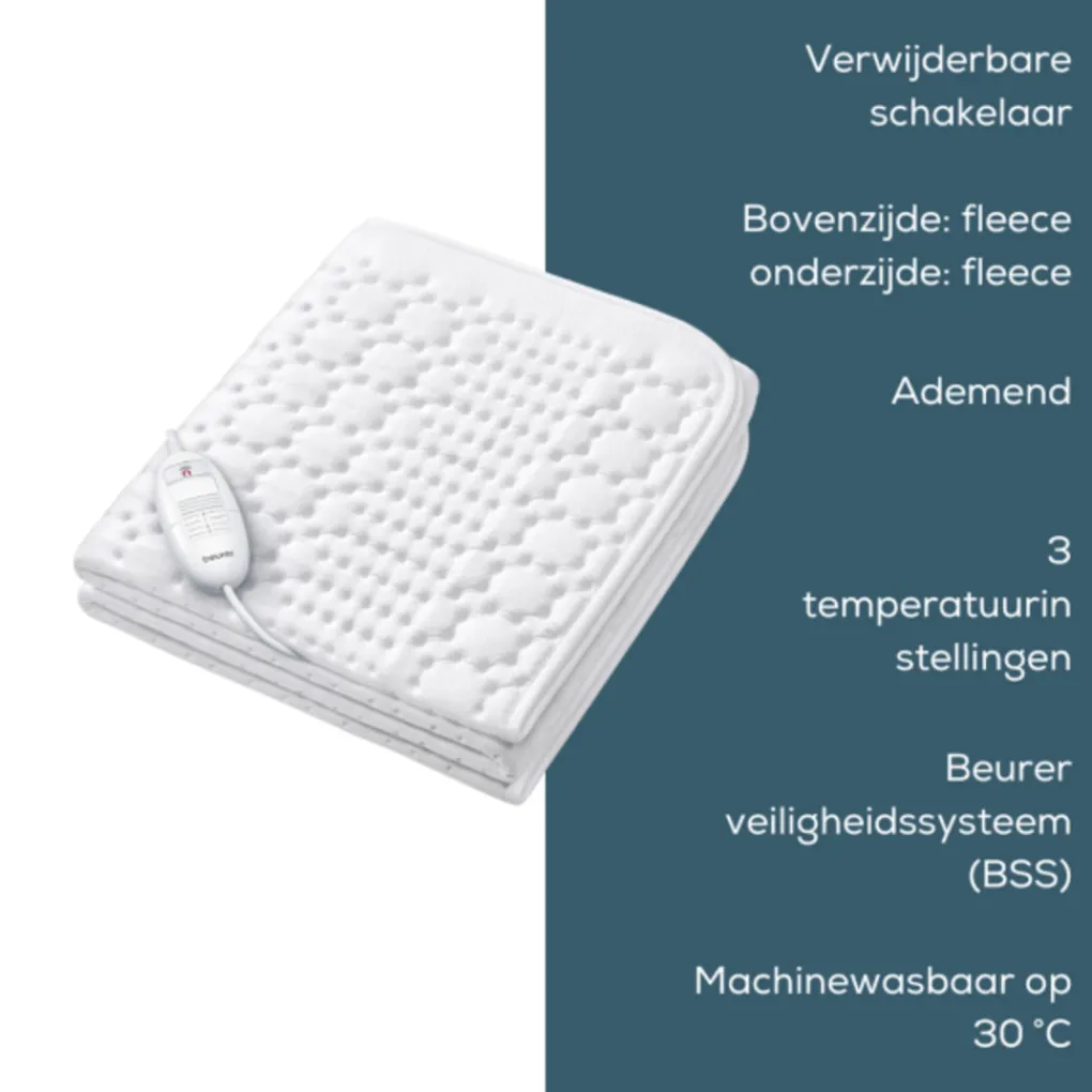 De Beurer TS 19 Compact – Elektrische (eenpersoons – 130 x 75 cm) onderdeken van comfortabel ademend fleecemateriaal beschikt over 3 temperatuurinstellingen en is van ademende fleece. Je comfortabel voelen was nog nooit zo eenvoudig.