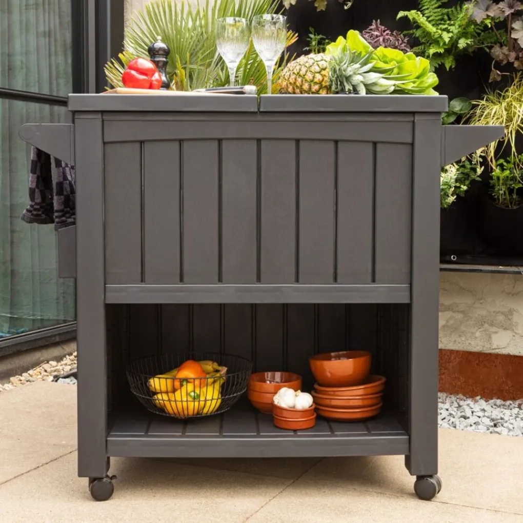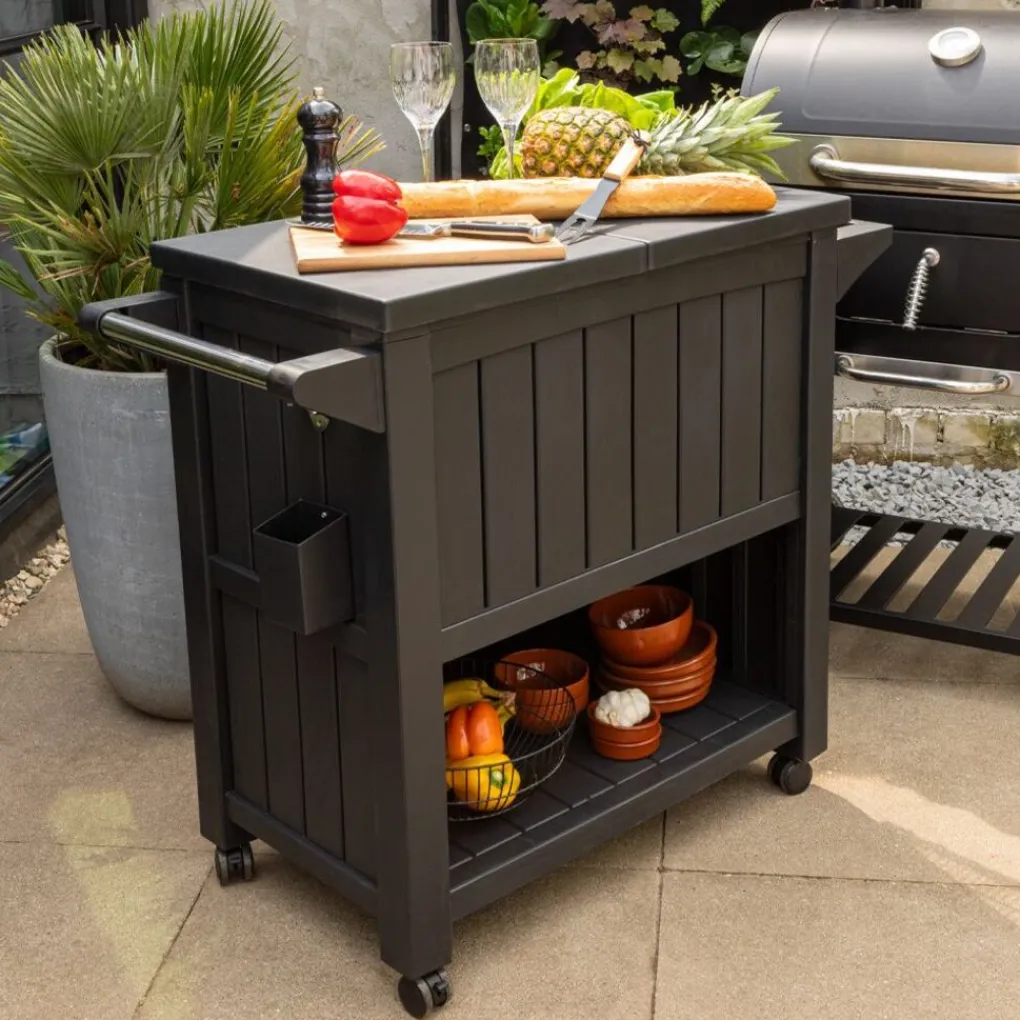 Organiseert u graag een gezellige barbecue of feestje in de tuin? Dan is de BluMill BBQ tafel onmisbaar in uw tuin deze zomer! Met de BluMill BBQ bijzettafel inclusief koelvak creëert u eenvoudig een buitenkeuken in uw eigen tuin. Gebruik de 3-in-1 barbecuetafel op wielen als opslag, keukenwerktafel en als koeling. Daarnaast heeft de barbecuetafel een ingebouwde flessenopener inclusief handig opvangbakje voor alle doppen. Door het ruime formaat van de tafel heeft u voldoende opslag en werkruimte om een heerlijke maaltijd te bereiden voor de hele familie en/of vriendengroep. De BBQ tafel bevat 4 wieltjes, waardoor de tafel gemakkelijk te verplaatsen of op te bergen is.