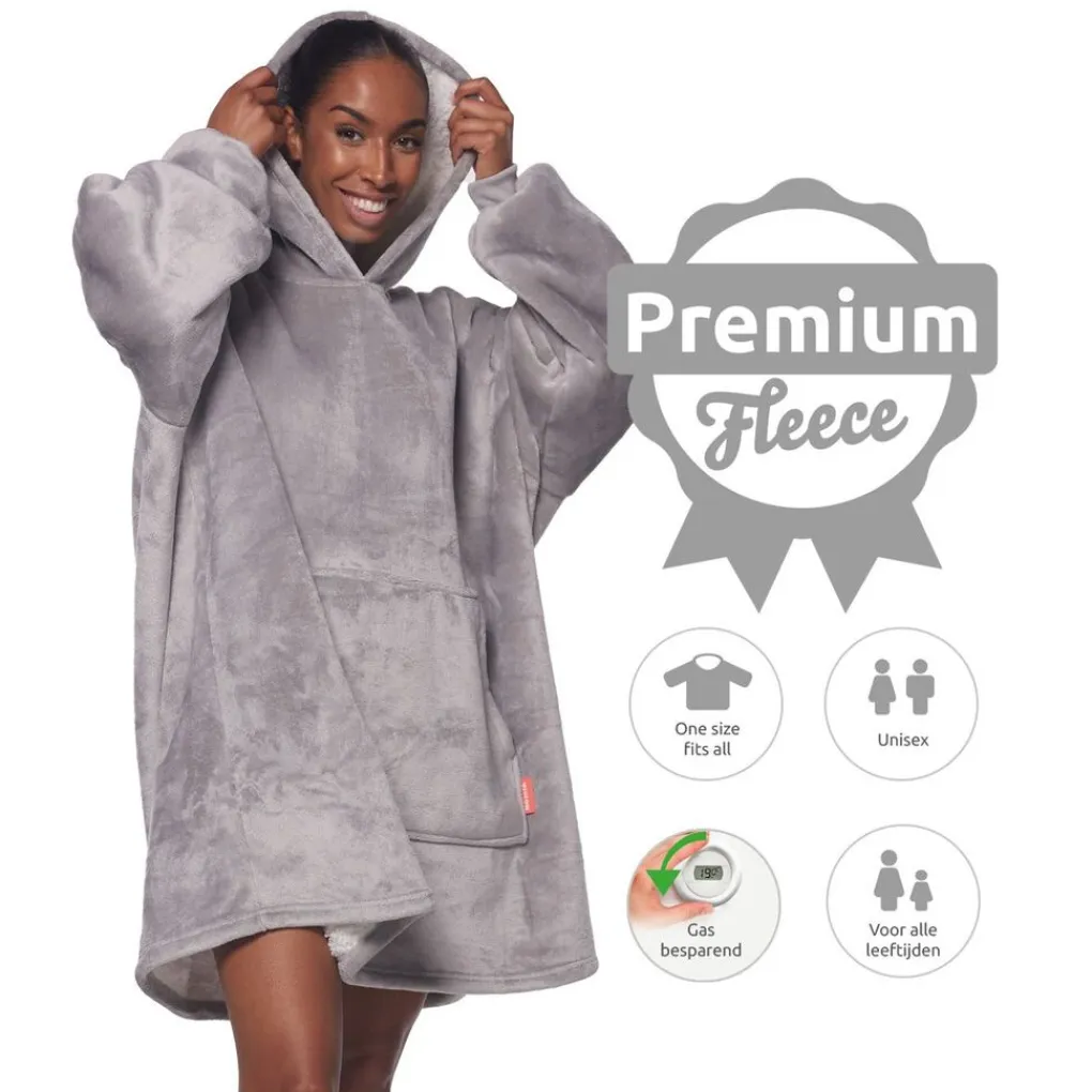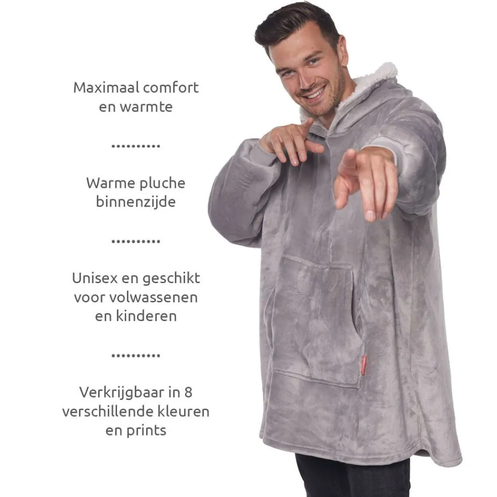 De Homie Hoodie is een superzachte deken in de vorm van een oversized sweatshirt die u aan beide kanten kunt dragen. Dankzij de warme fleece en pluche bent u snel lekker warm. Of u nu heerlijk thuis op de bank ligt of ’s avonds nog even buiten zit, het geeft altijd een comfy en warm gevoel! Ideaal voor de koude winteravonden; de verwarming kan een paar graadjes omlaag!