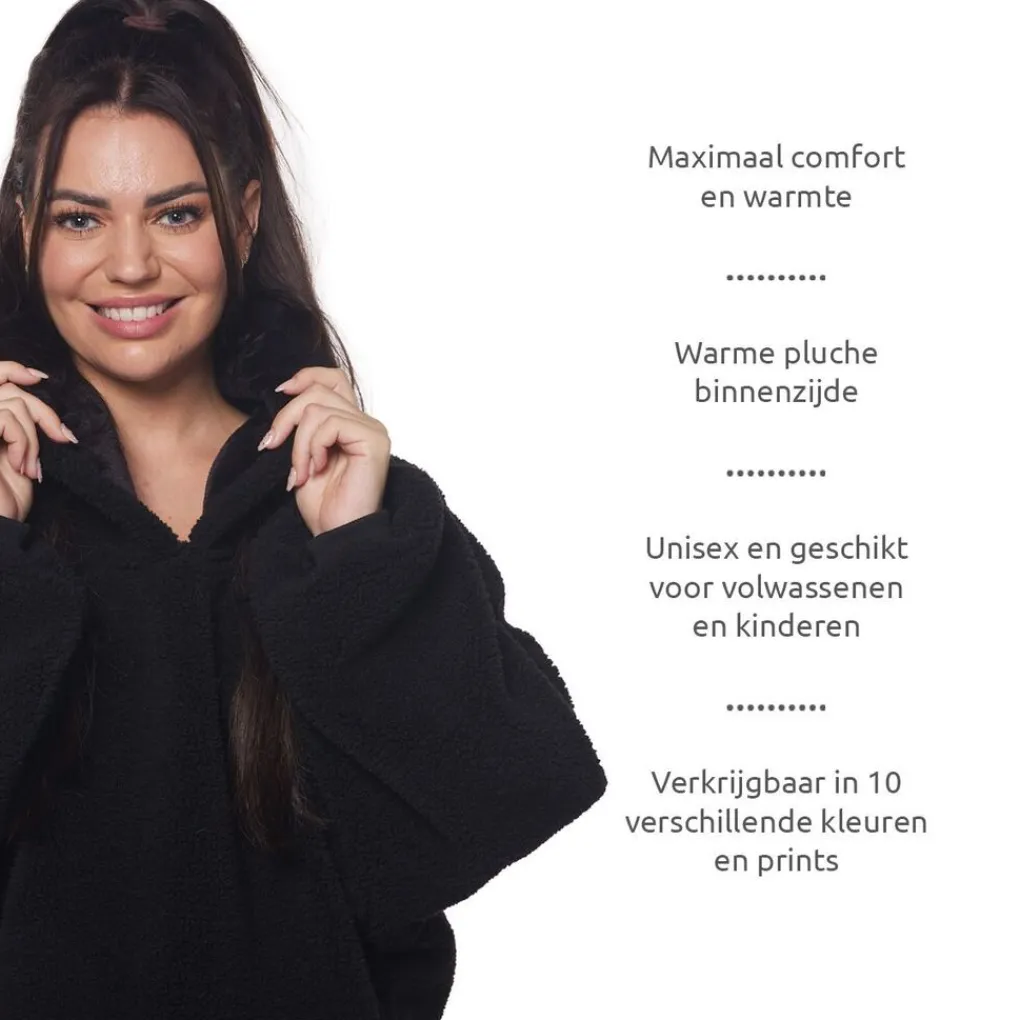 De Homie Hoodie is een superzachte deken in de vorm van een oversized sweatshirt die u aan beide kanten kunt dragen. Dankzij de warme fleece en pluche bent u snel lekker warm. Of u nu heerlijk thuis op de bank ligt of ’s avonds nog even buiten zit, het geeft altijd een comfy en warm gevoel! Ideaal voor de koude winteravonden; de verwarming kan een paar graadjes omlaag!