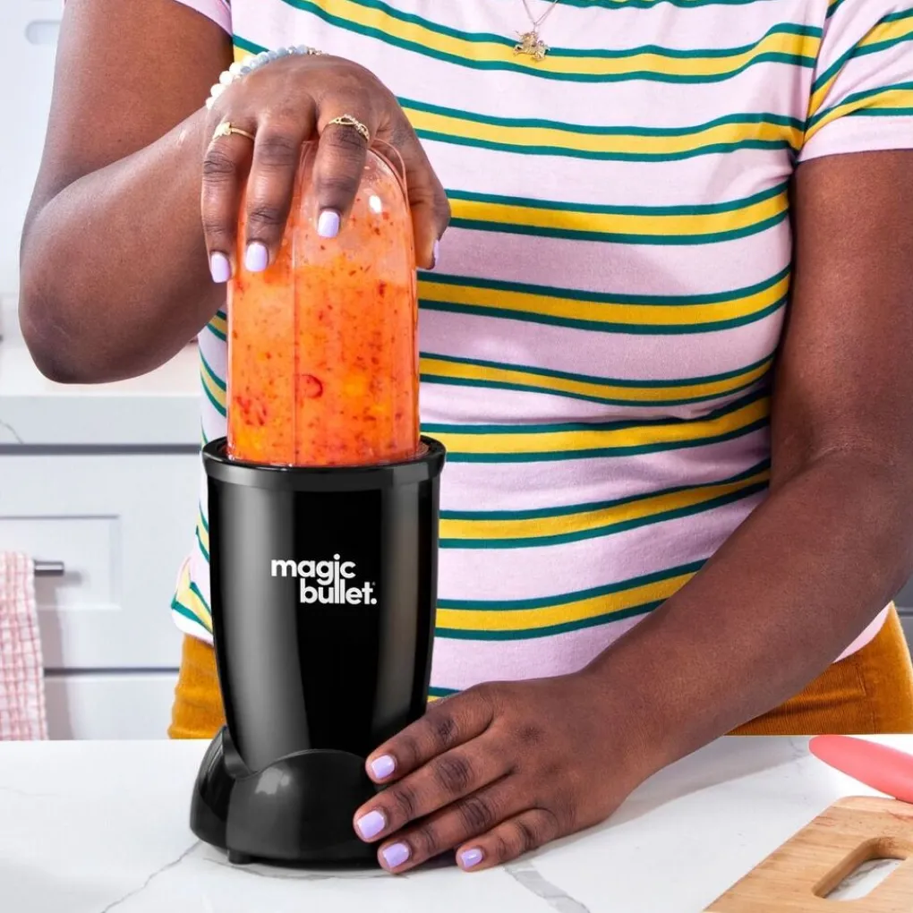 Magic Bullet heeft een eenvoudig bedieningssysteem: doe de ingrediënten in de beker,plaats de beker op de base en druk naar beneden. Easy does it! Magic Bullet heeft een slank,compact ontwerp waardoor de blender weinig ruimte inneemt op uw aanrecht of in uw keukenkastje.