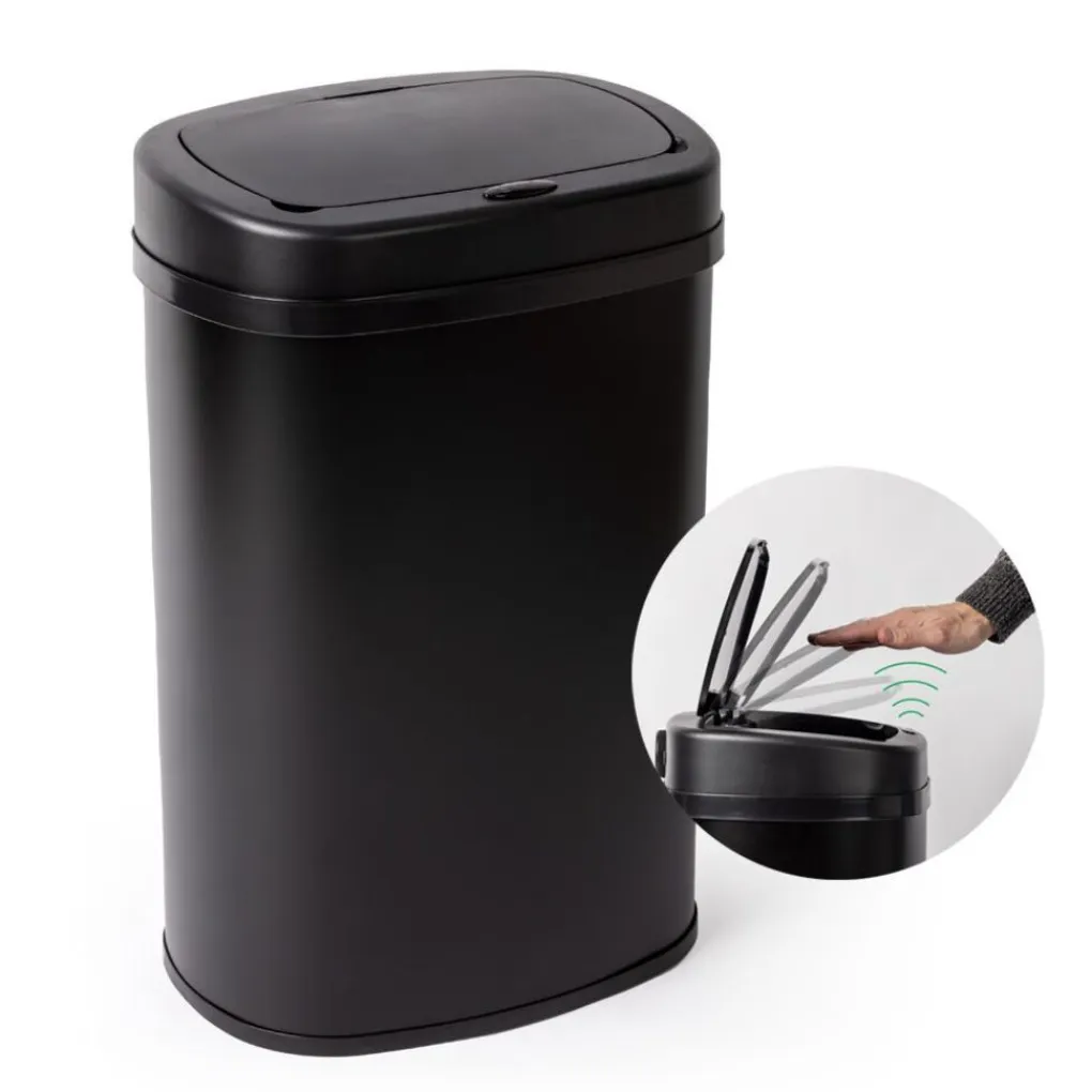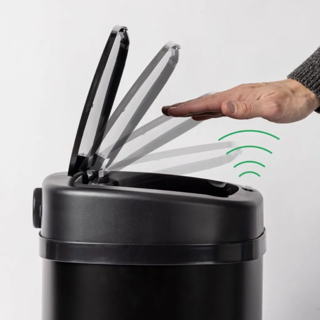 Met zijn matzwarte uitstraling is deze automatische prullenbak echt een eyecatcher in uw interieur. Het strakke design past perfect bij moderne interieurstijlen en geeft een luxe uitstraling aan elke ruimte.