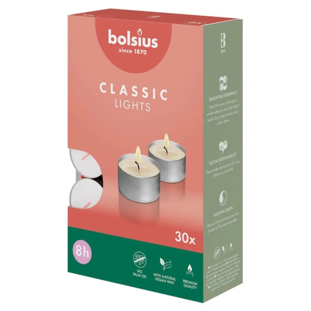 Bolsius – waxinelichtjes met zilveren cup – in doos – 8 branduren – 30 stuks