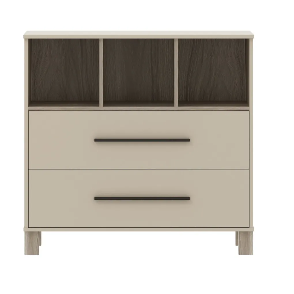 - Stoere details dankzij de zwarte handgrepen op de lades