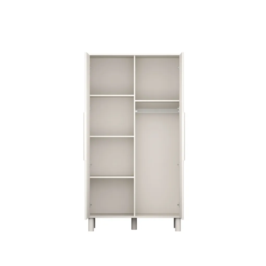 Met afmetingen van 105×195.1×55.2 cm biedt de kledingkast volop ruimte voor het opbergen van baby- en kinderkleding, beddengoed en andere benodigdheden. De kast beschikt over handige legplanken en een roede, zodat je kleding overzichtelijk kunt ophangen en opbergen. Dit zorgt ervoor dat alles netjes georganiseerd blijft.