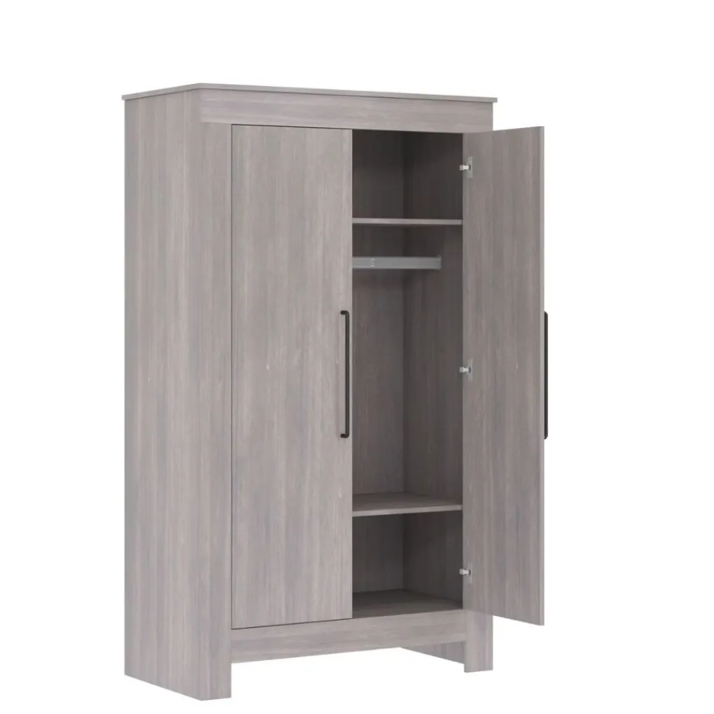 De 2 deurs kledingkast heeft diverse legplanken en een hangroede. Zo kun je de kleding van jouw kindje netjes opbergen. Maak de kast compleet met het bijpassende baby bedje, commode en wandrekje! Deze meubels zijn los verkrijgbaar.
