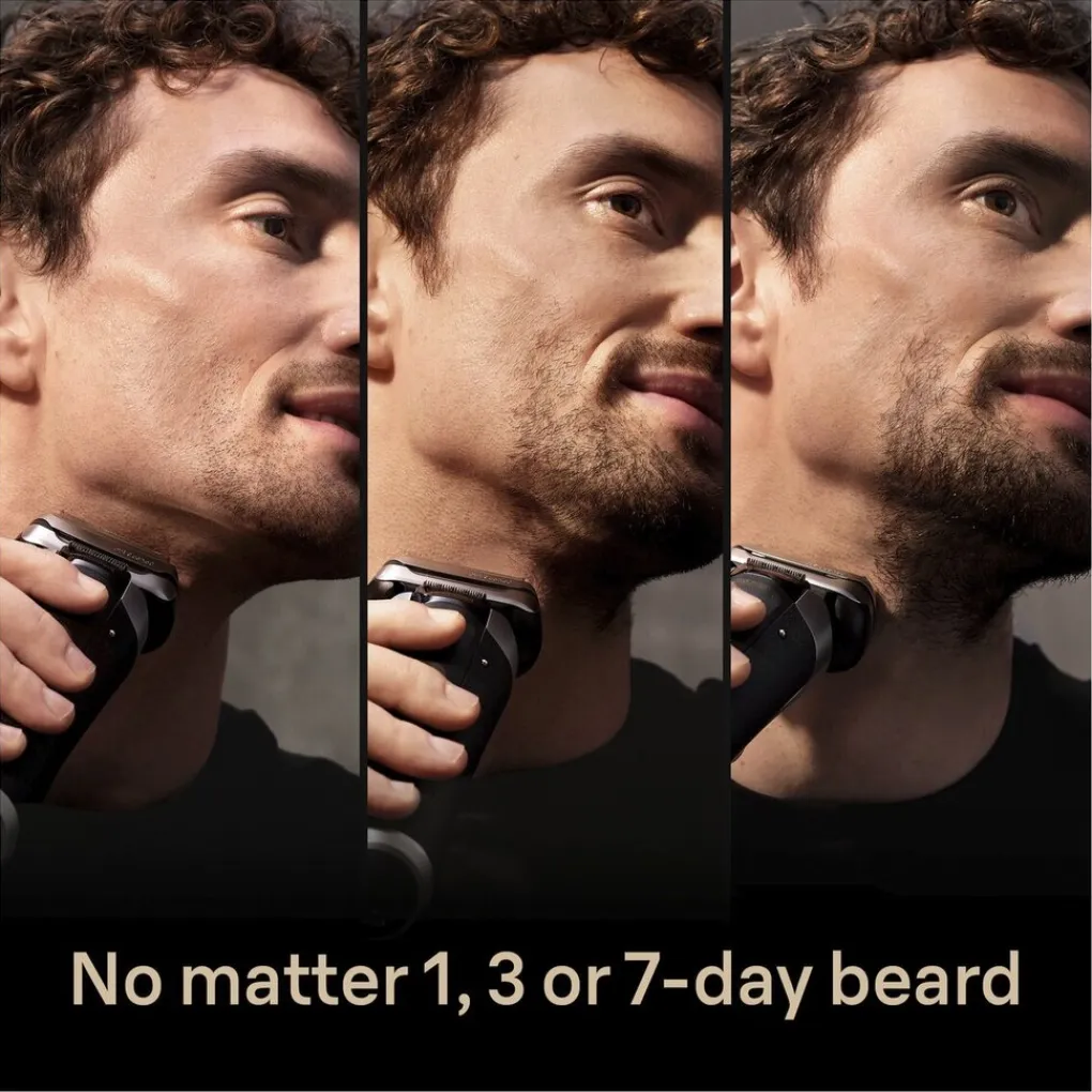 Het Braun Series 9 Pro+ 9515s Elektrisch Scheerapparaat geniet je van een efficiënte en zachte scheerbeurt bij elke beweging, ongeacht of je een baard van een, drie of zeven dagen hebt.