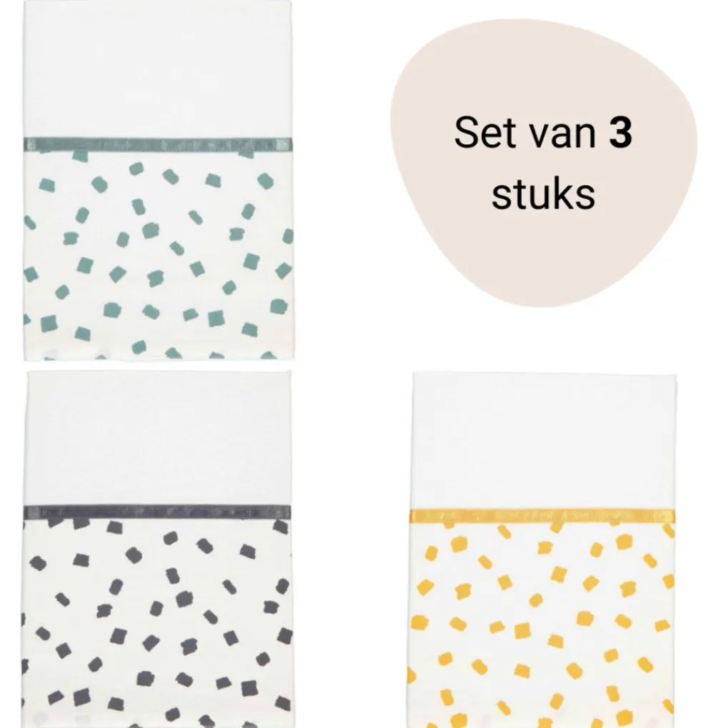 Deze leuke set met lakentjes zijn van het merk Briljant Baby. De lakens zijn gemaakt van 100% katoen. Hierdoor zijn ze extra ademend en comfortabel voor je kindje om onder te slapen. De afmeting van de lakentjes zijn; 75×100 cm.