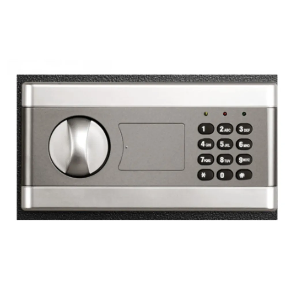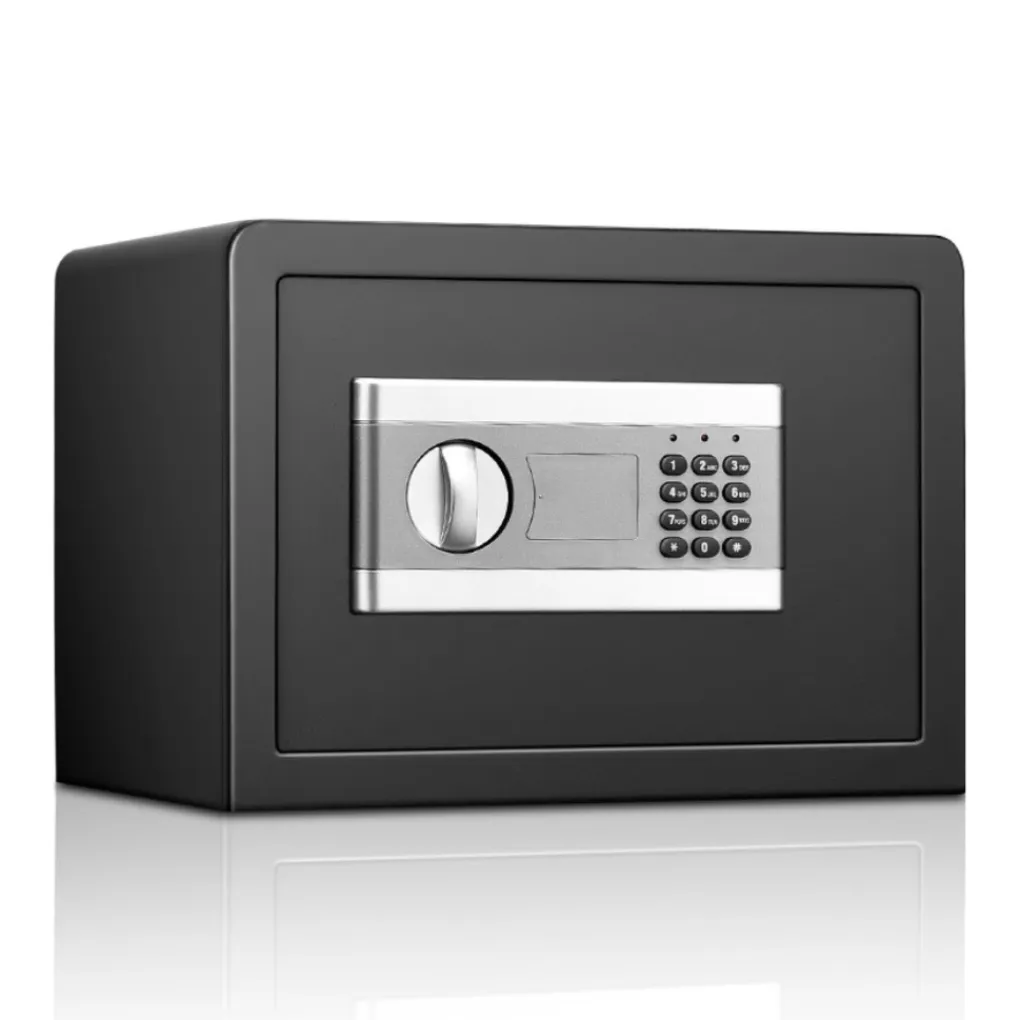 Het digitale codeslot van de kluis is batterij aangedreven waardoor je geen rekening hoeft te houden met het aansluiten op het lichtnetwerk. Als de batterijen op raken gaan het indicator lichtje rood branden. Daarnaast zijn er 2 sleutels aanwezig voor het geval de code wordt vergeten of de batterijen te weinig stroom levert. De kluis heeft een bescheiden simpele look, valt niet op en sluit aan op velen soorten interieur door de neutrale zwarte kleur.