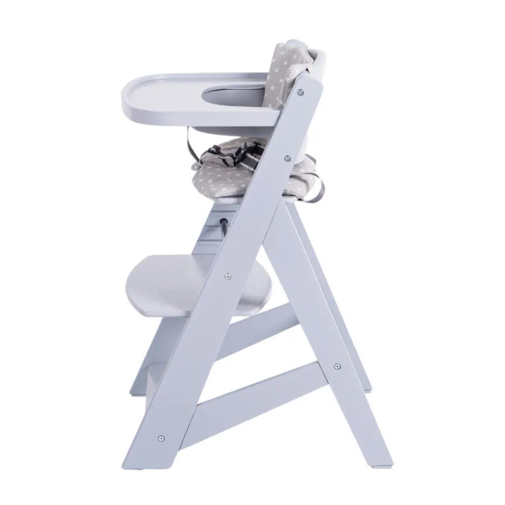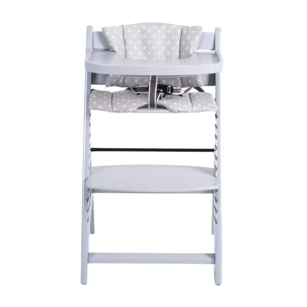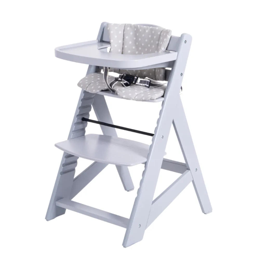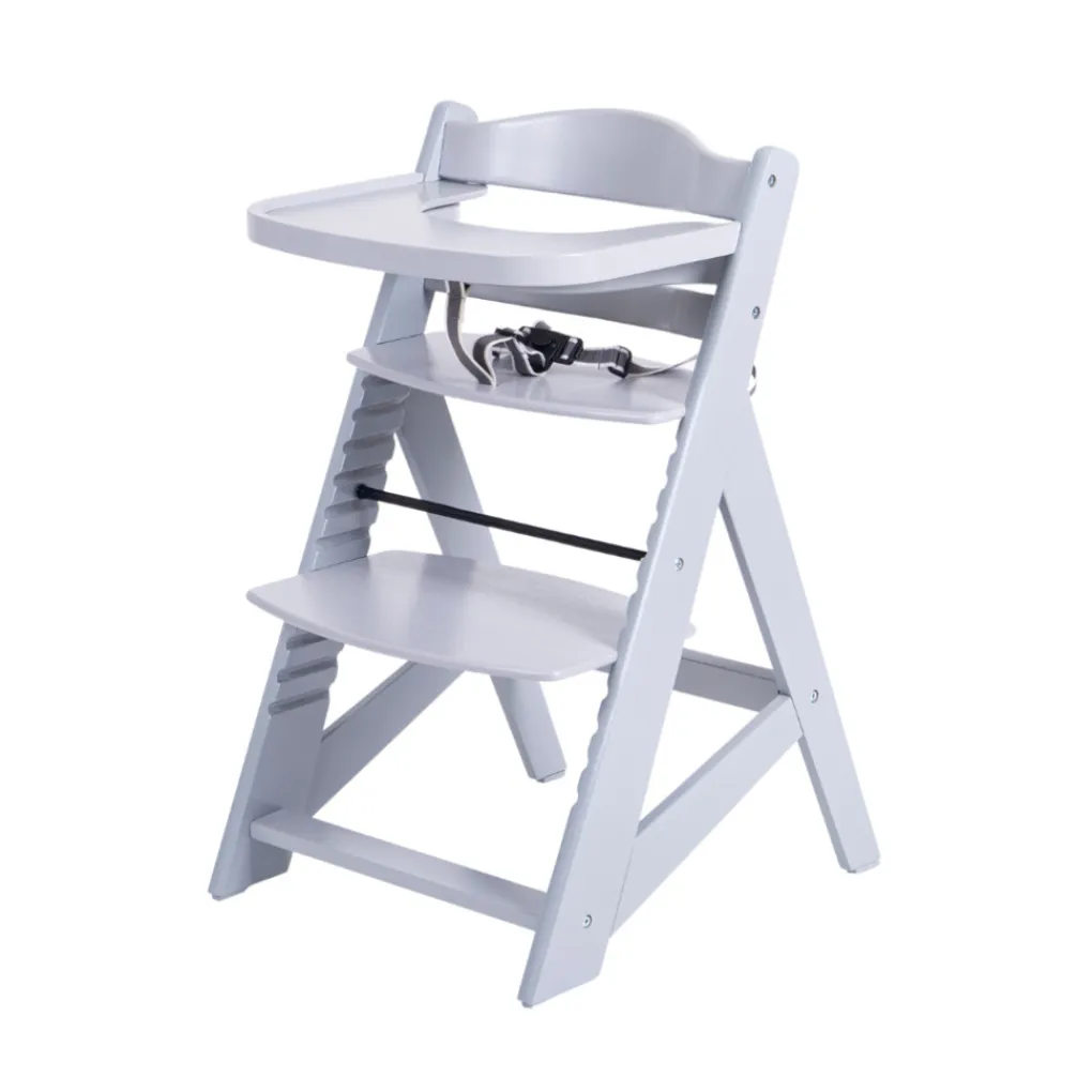 Met de houten tray en voorste beugel biedt het een veilige en comfortabele zitplek voor baby’s tot 15 kg. Wanneer je kindje groter wordt, kun je de voorste beugel eenvoudig verwijderen. De stoel groeit mee en kan tot 50 kg dragen, waardoor het ook geschikt is voor oudere kinderen. Een sterke en praktische keuze!