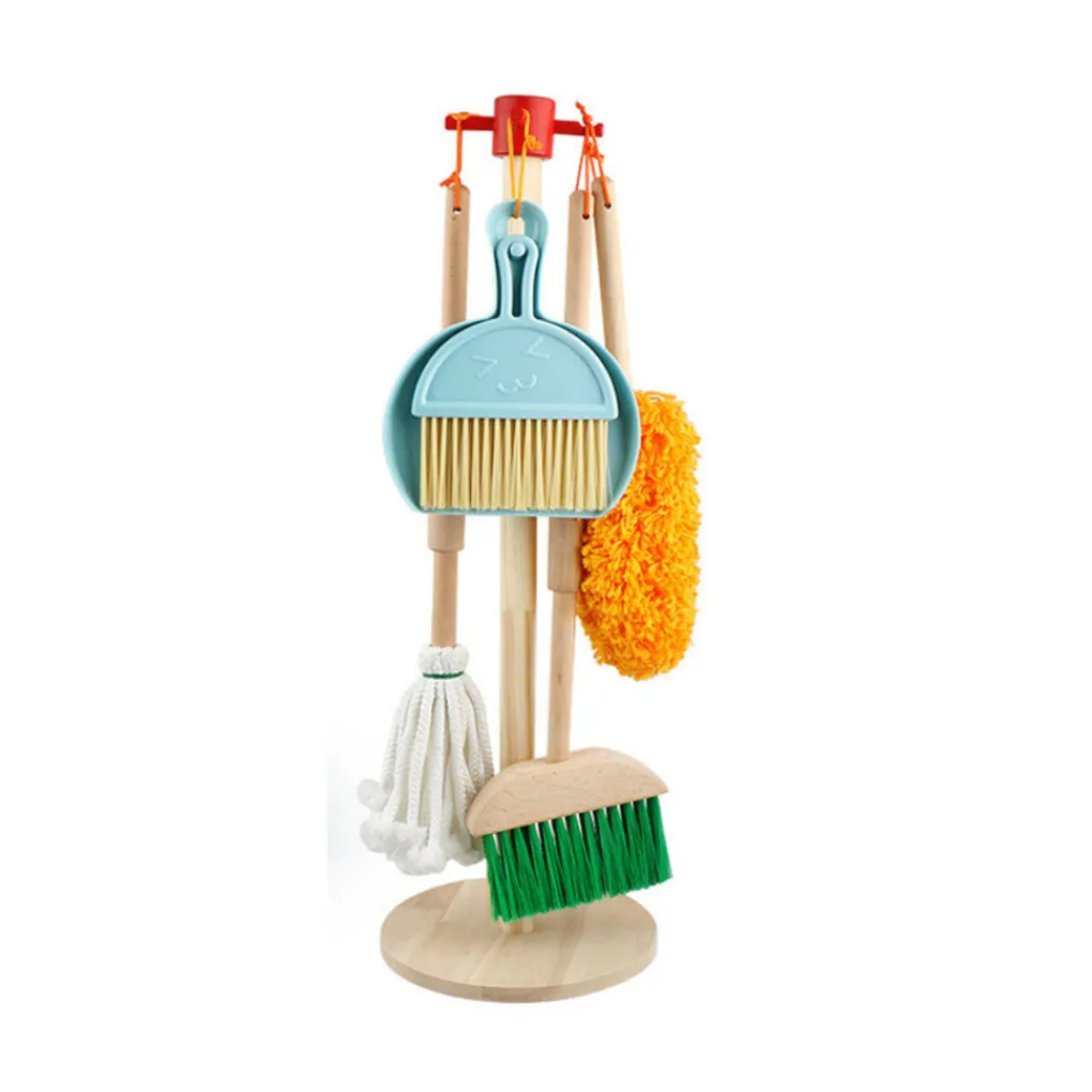 Ontdek de Buxibo Houten Kinder Schoonmaak Set, een kleurrijke speelgoed schoonmaakset speciaal ontworpen voor kinderen. Met houten huishoudelijke gereedschappen zoals een bezem, stoffer, mop en plumeau, biedt deze set een perfecte introductie tot huishoudelijke taken in Montessori-stijl.