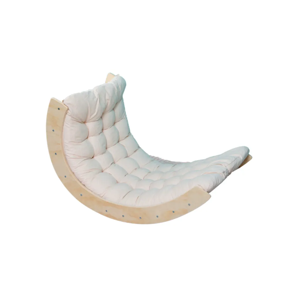 De klimboog is ontworpen volgens Montessori-principes en ondersteunt zelfstandig en creatief spel. Het veelzijdige ontwerp biedt ook ruimte om te ontspannen of als schommel te gebruiken met het bijgeleverde kussen.