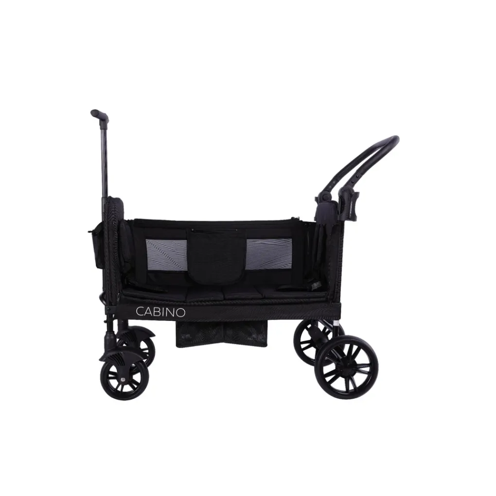 De Cabino Waggie is voorzien van gordels aan beide kanten, zodat twee kinderen veilig vervoerd kunnen worden. De verstelbare handgreep maakt het mogelijk om de kar zowel te duwen als te trekken, precies zoals jij dat prettig vindt. De afneembare luifel beschermt tegen felle zon, zodat je kindjes altijd comfortabel in de schaduw zitten. Met het geïntegreerde dienblad en de bekerhouders heb je onderweg bovendien altijd ruimte voor snacks en drankjes.