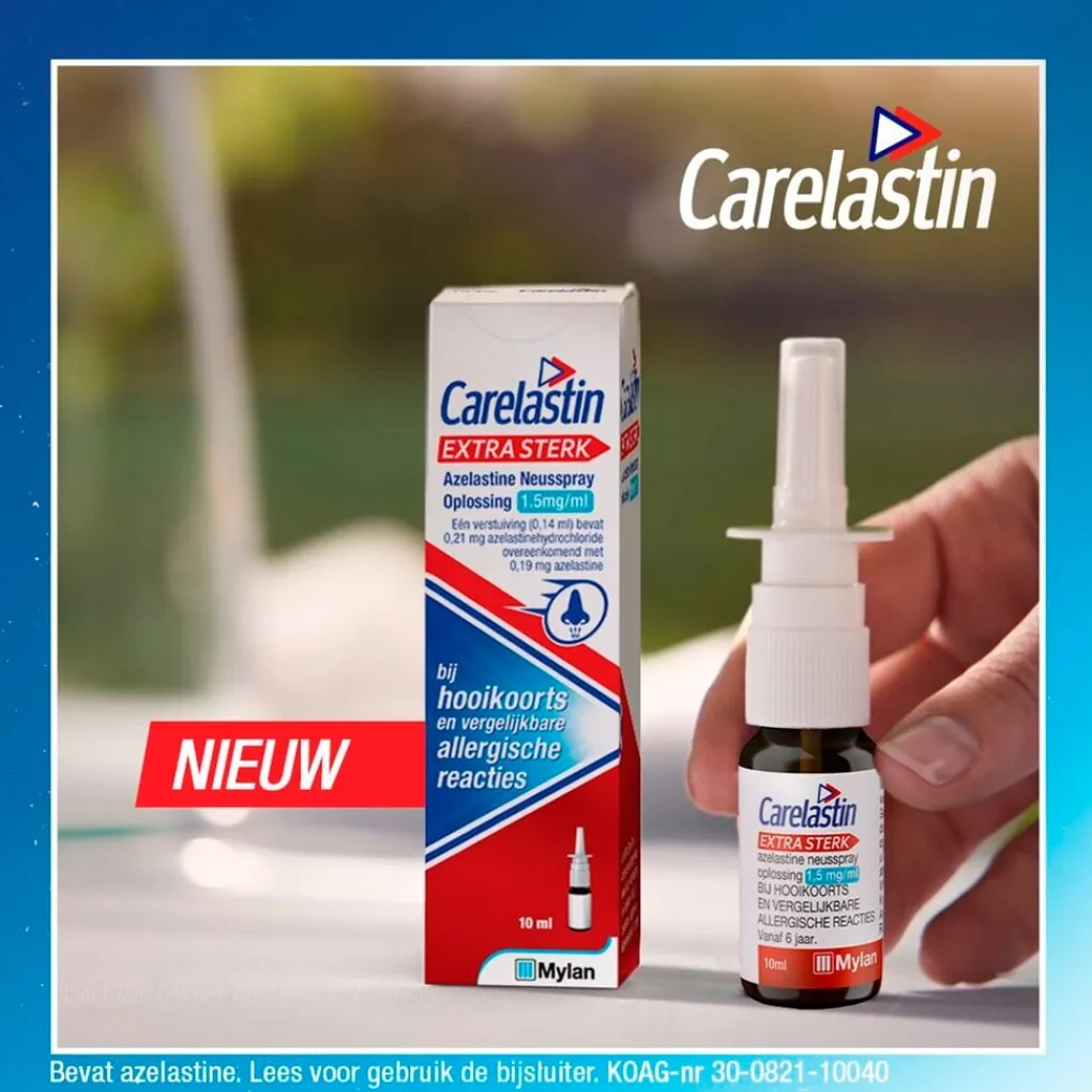 Carelastin Extra Sterk Neusspray is een product dat je gebruikt als je last hebt van de symptomen van hooikoorts, huisstofmijtallergie of huisdierenallergie. Carelastin bevat azelastine (een antihistamine) en werkt binnen 15 minuten.