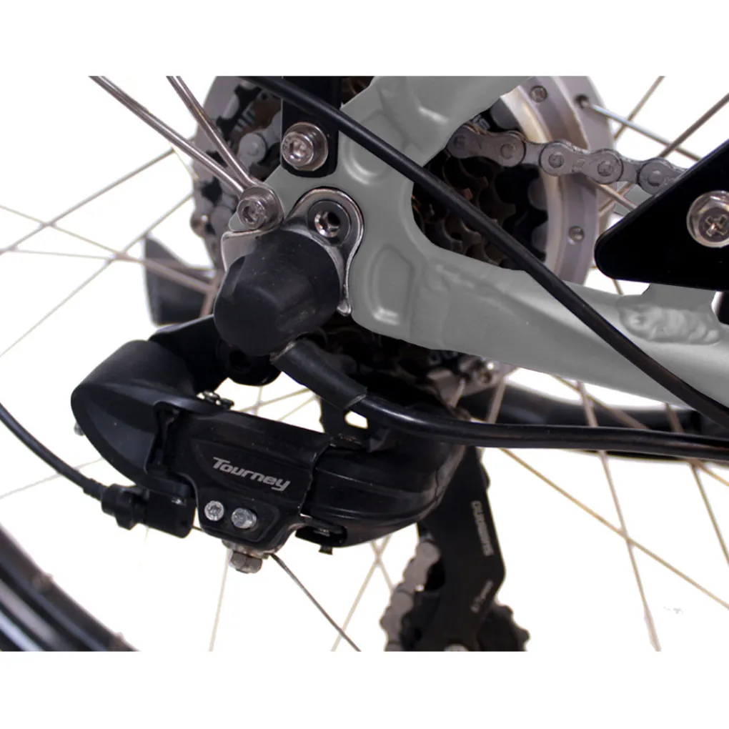 De onder de achterdrager geplaatste 10.4 Ah accu heeft een capaciteit van 374 Wh. Hiermee is een actieradius van tot ca 80 km mogelijk. De voorvork is voorzien van geveerde poten en geeft op hobbelig wegdek veel comfort. Ook het prettig gevormde zadel werkt mee aan het comfortabele fietsgevoel. Deze ebike is een prima vervoermiddel voor dagelijks gebruik in stad of platteland. De ondersteuning stopt bij een snelheid van 25 kilometer per uur.