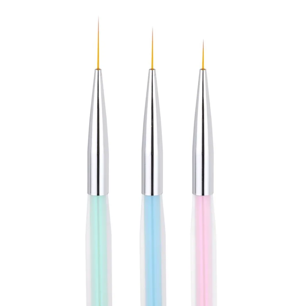 Een set van 3 nail art penselen met verschillende lengtes penseelharen voor het decoreren van je nagels.