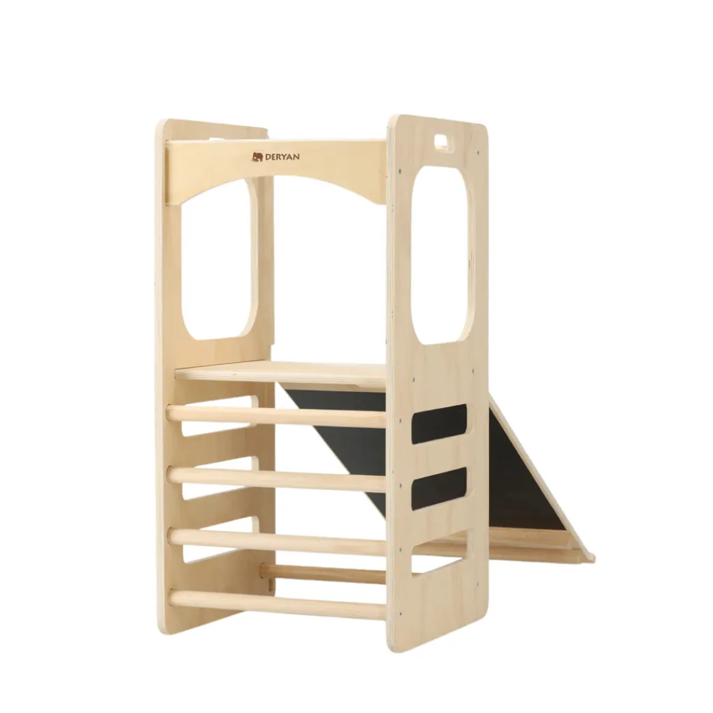 Laat je kind veilig klimmen, spelen en ontdekken met de Deryan Klimtoren. Deze stevige, multifunctionele speeloplossing stimuleert motoriek, zelfvertrouwen en zelfstandigheid. Dankzij het slimme ontwerp met glijbaan en schoolbord verandert elke ruimte in een plek vol uitdaging en plezier.