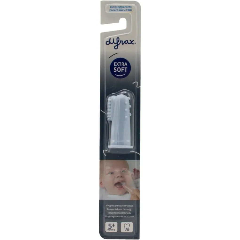 Met de Difrax Baby Vingertop Tandenborstel poets je spelenderwijs je baby’s tandjes. Zo maak je makkelijk een goed begin met de mondverzorging. Door een massage van het tandvlees verlicht je de pijn van doorkomende tandjes.