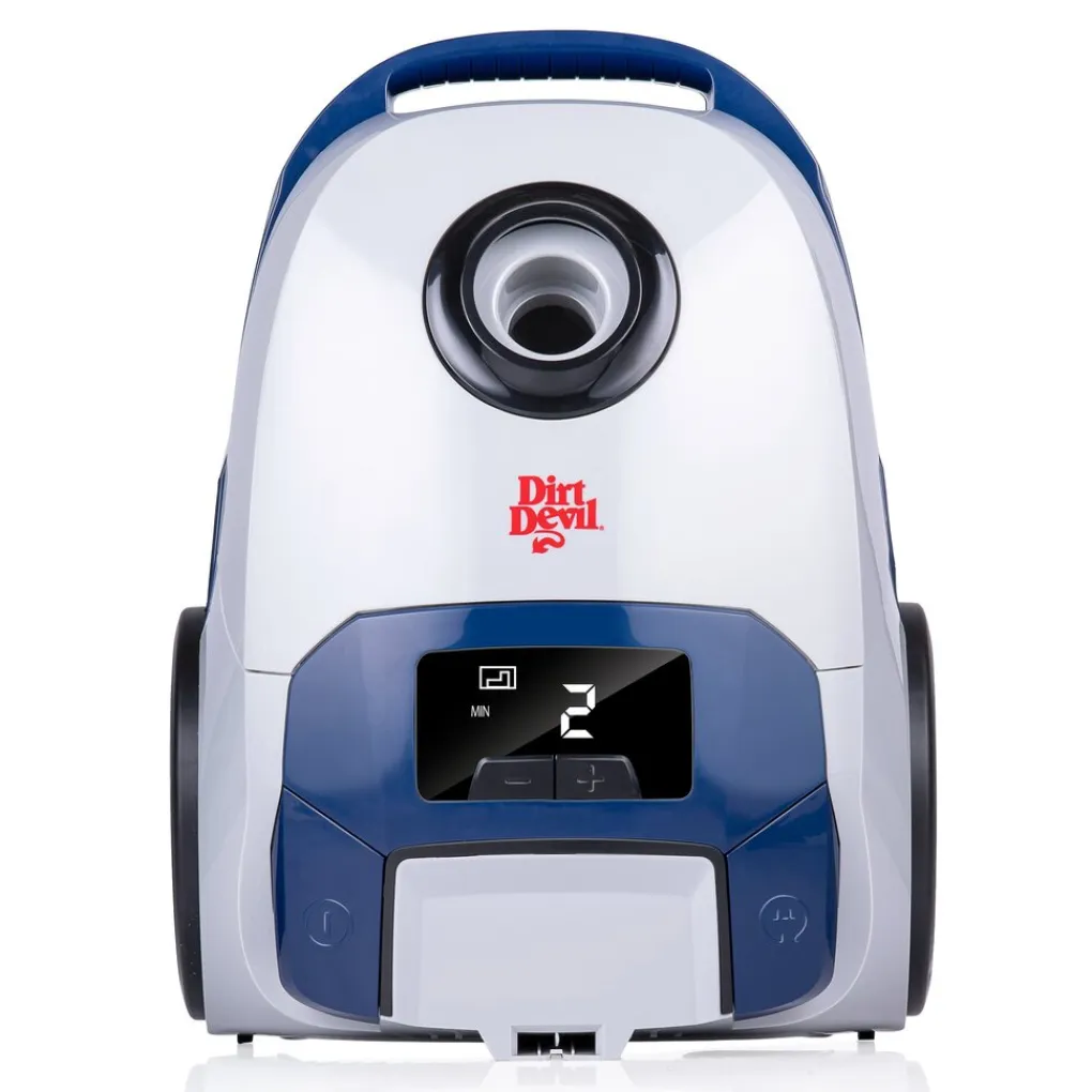 Het stof en vuil dat opgezogen wordt komt terecht in de stofzak die je zelf in de stofzuiger kunt plaatsen. De Dirt Devil stofzuiger biedt ruime voor stofzakken met een inhoud van maar liefst 2,5 liter. Daarnaast kun je zowel een stofzuigerzak van papier als van stof plaatsen. Let bij de aanschap van een nieuwe stofzuigerzak daarom altijd op een capaciteit van 2,5 liter. Wanneer de stofzak vol is lees je dit af op het digitale display van de stofzuiger.