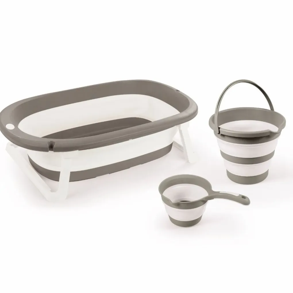 Deze set is compleet gemaakt met een emmertje en een pannetje die beide opvouwbaar zijn. Hiermee kun je je kindje gemakkelijk wassen of laat je kleine er juist mee spelen.