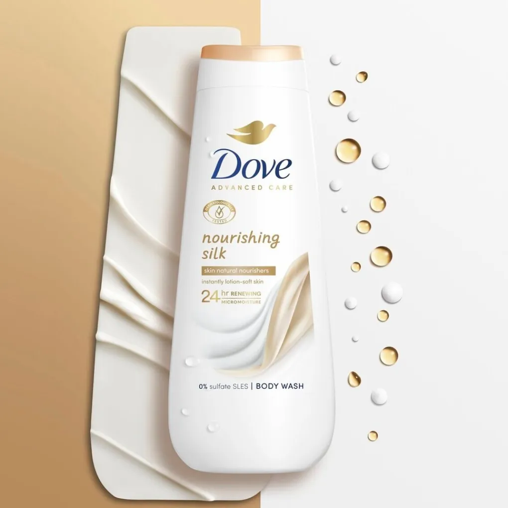 Hoe gebruik je de Dove Advanced Care Nourishing Silk Douchegel?