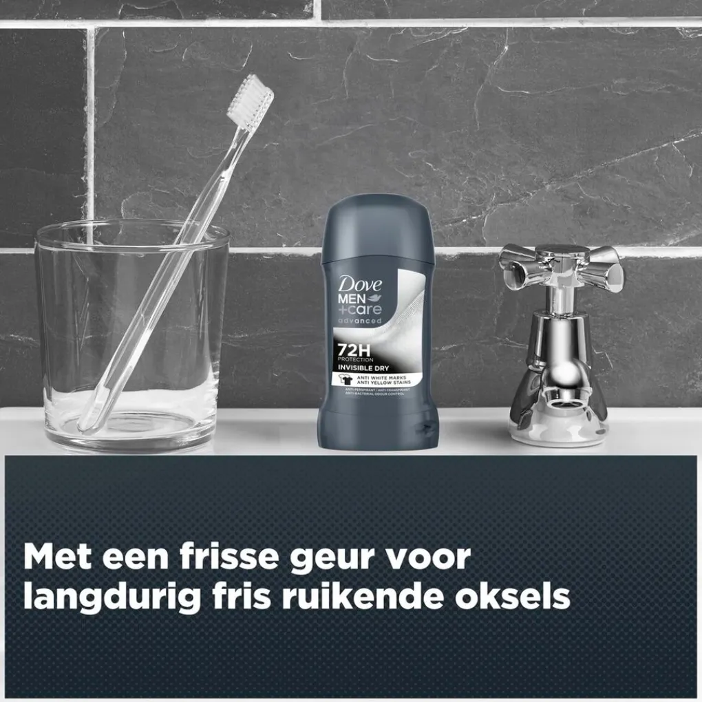 De Dove Men+Care Advanced Invisible Dry Deoroller bevat antibacteriële geurbestrijding en beschermt tot 72 uur tegen zweet en nare geurtjes en tegen witte strepen en gele vlekken.