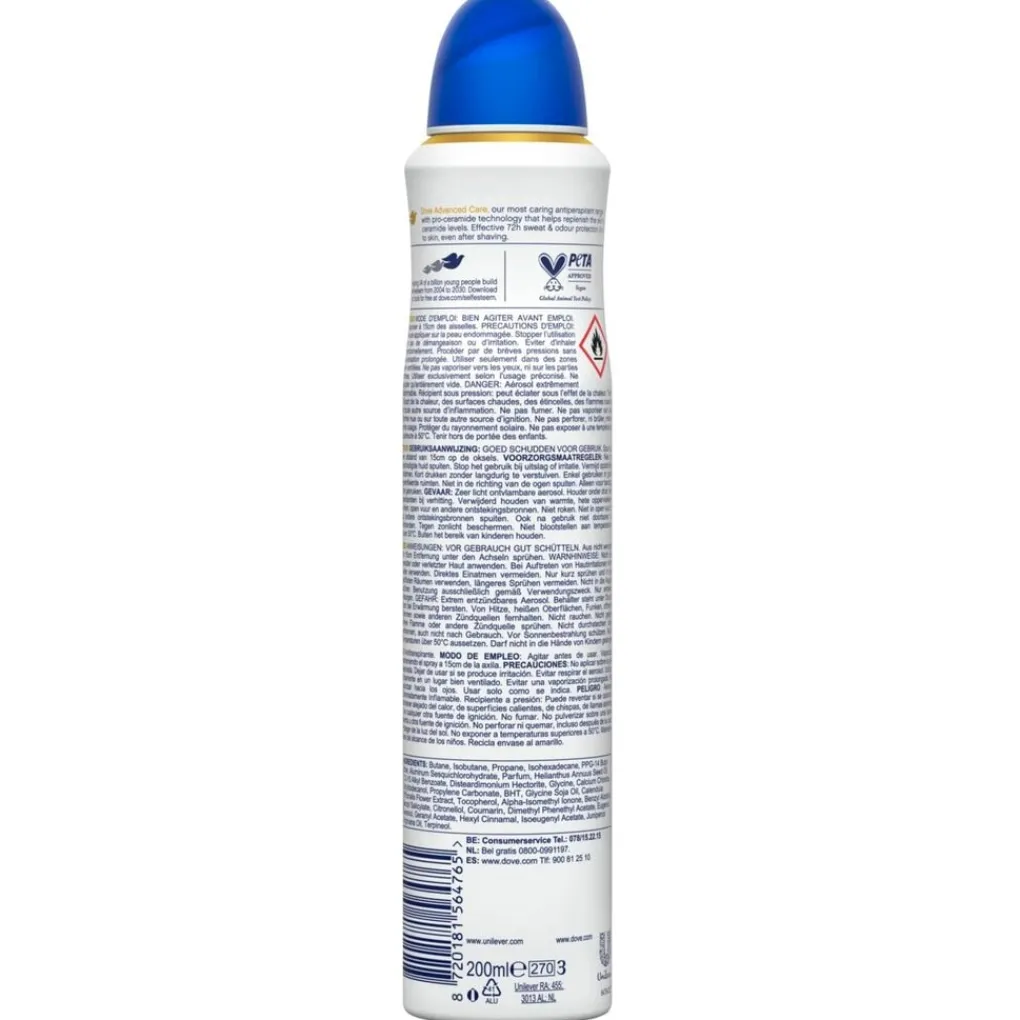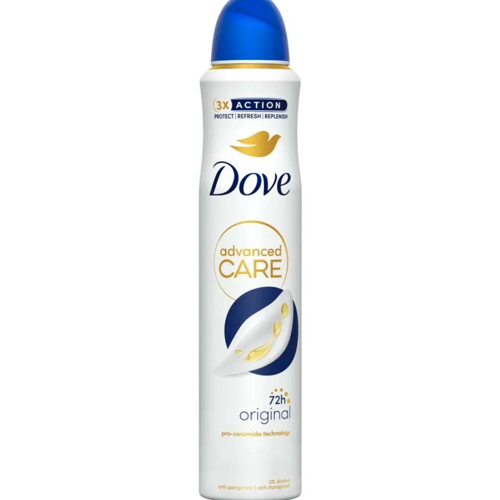 Dove Original Compressed Deodorant Spray is een antitranspirant die ook gevoelige oksels verzorgt. De deodorant biedt 72 uur bescherming tegen zweet en geur en bevat ¼ hydraterende crème.