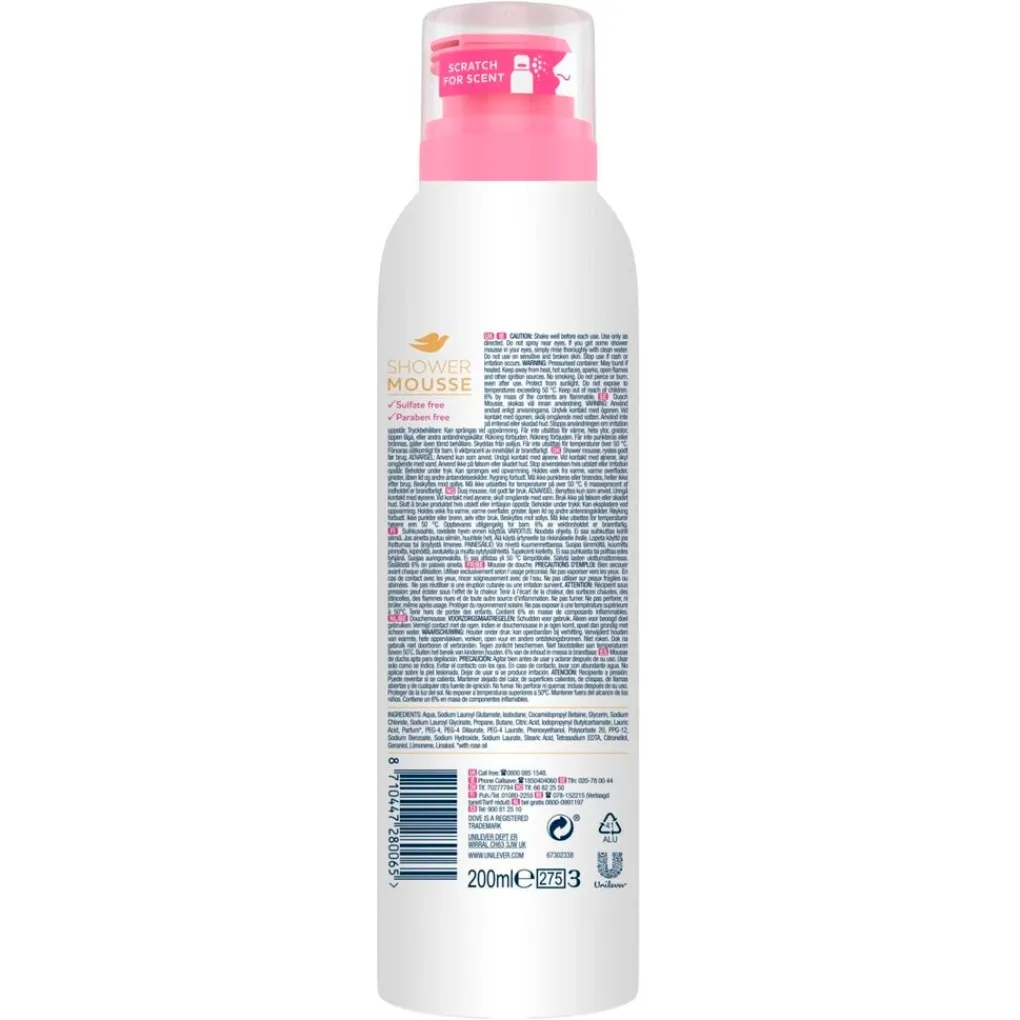 Al 60 jaar lang houdt Dove zich bezig met huidverzorging. Tegenwoordig biedt Dove vrouwen meer keuzes tijdens het douchen, waarbij de producten de verzorging bieden die je huid nodig heeft. Met de Dove Rose Oil Shower Mousse geniet je van een heerlijke luxueuze douche ervaring. De mousse is zacht en schuimt rijkelijk. Daarnaast bevat de mousse essentiële oliën.