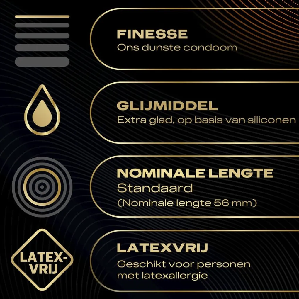 De condooms zijn ultralubricated en op siliconenbasis, Dit condoom is niet compatibel met glijmiddelen op waterbasis, omdat deze het condoom kunnen beschadigen. Gebruik alleen glijmiddelen op siliconenbasis.